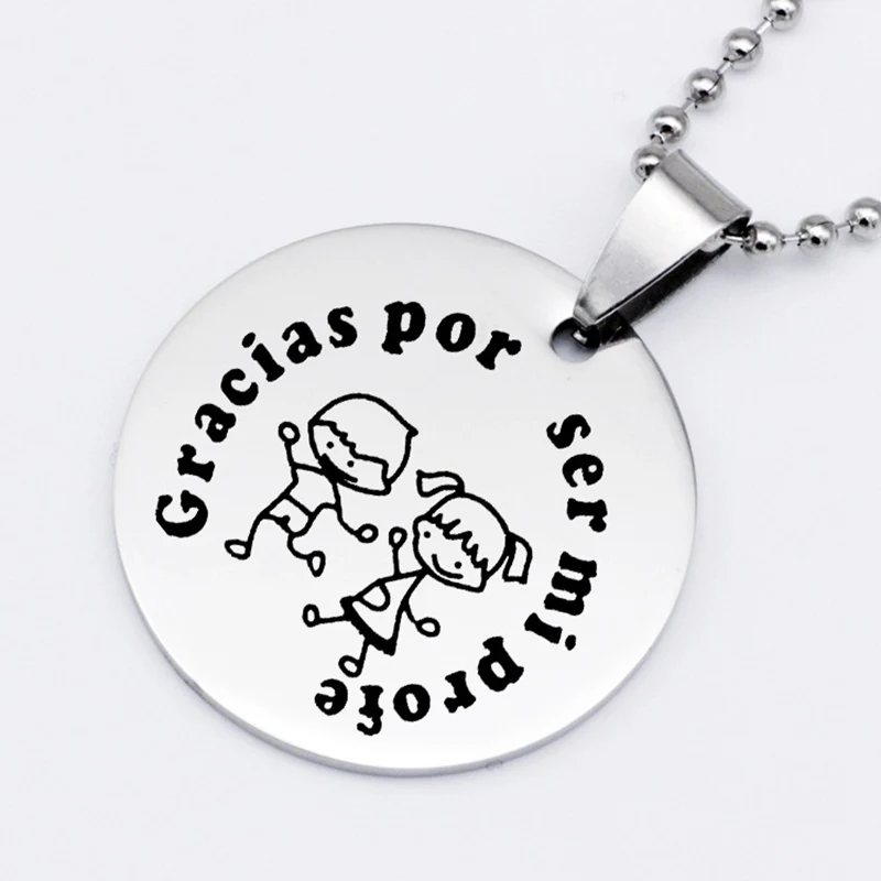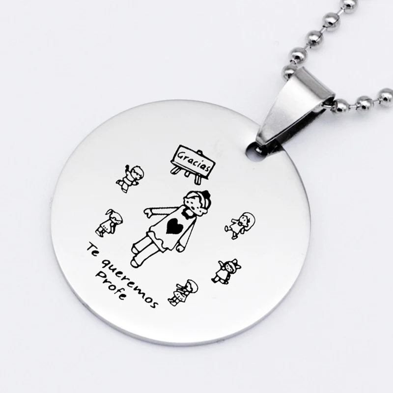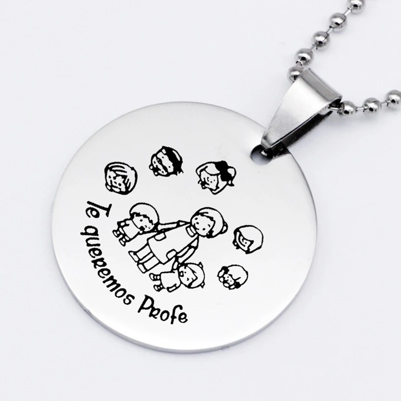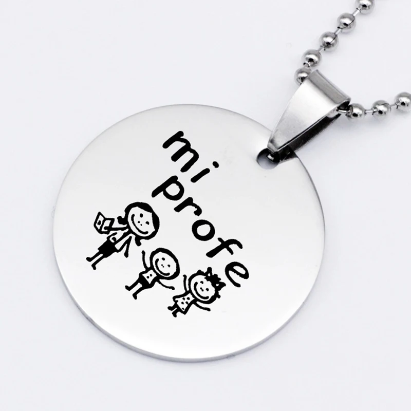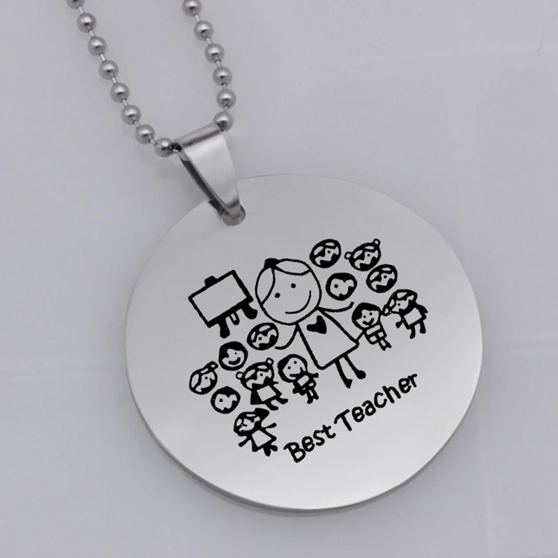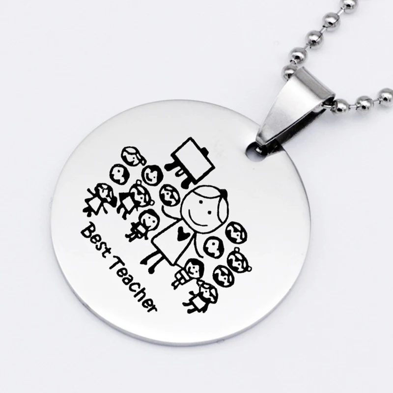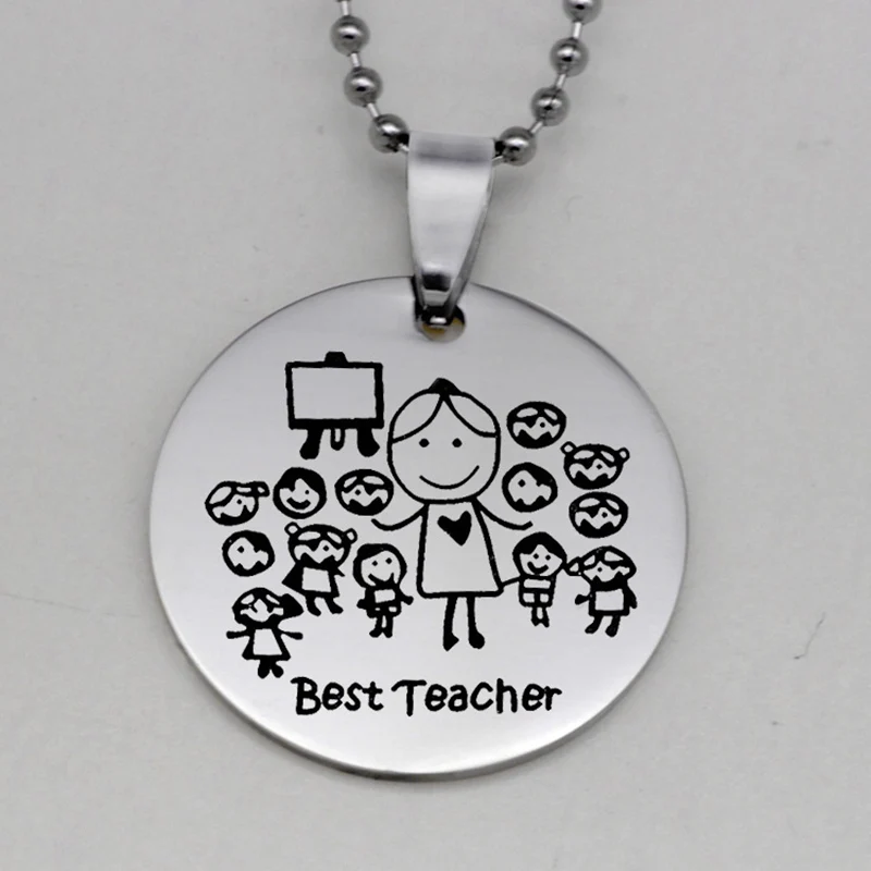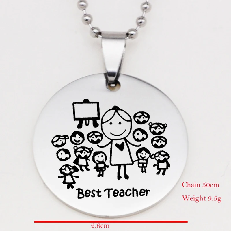 Teacher Students Pendant Necklace Stainless Steel Super Teacher Cartoon Kids Necklaces For Women Teacher's Day Gift