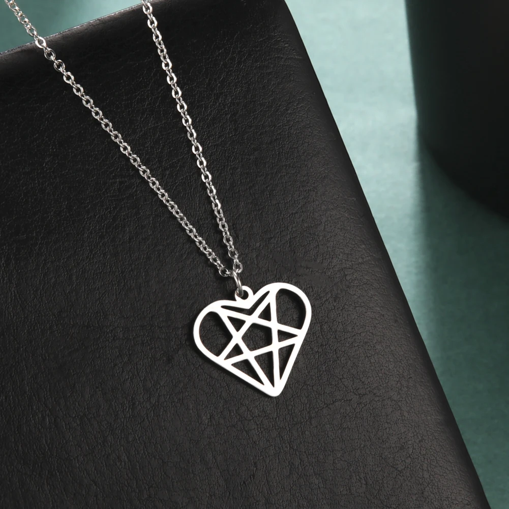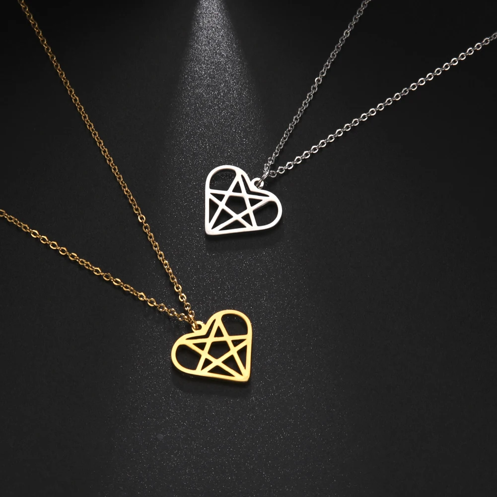 Teamer Stainless Steel Necklace for Women Witchcraft Jewelry Vintage Star Pentagram Pendant Necklace Choker Witchy Accessories