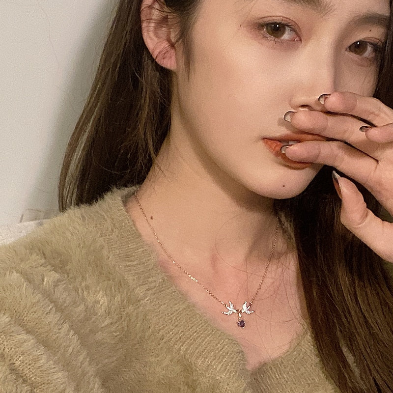Temperament Entry Lux Full of Crystals Feiyan Necklace Japan and South Korea Internet Versitile Purple Crystal Short