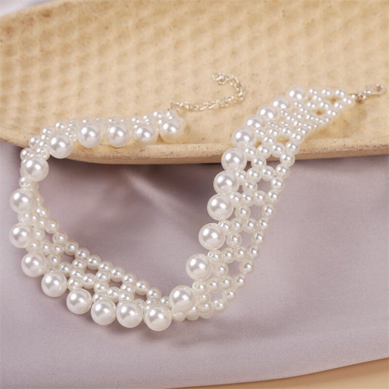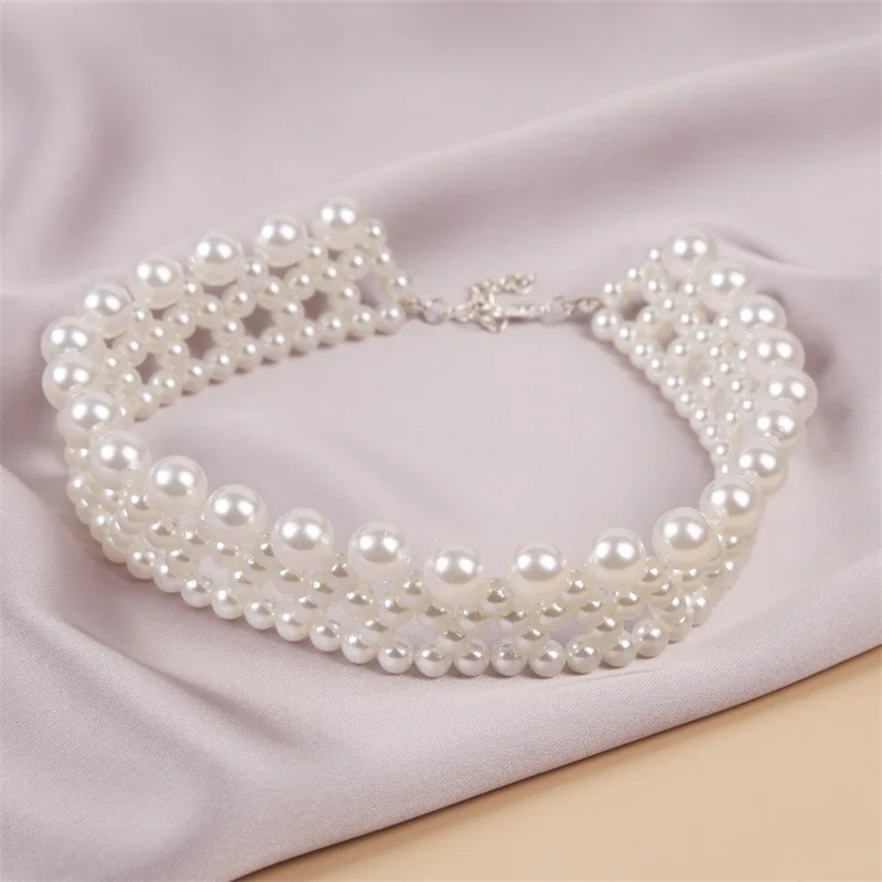 Temperament Woman Hand-woven Pearl Choker Necklace for Woman Party Casual