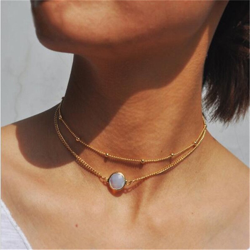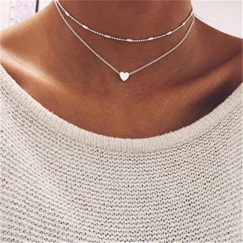Tenande Heart Crystal Necklaces Leaf Moon Choker Necklaces Pendants for Women Beach Style Statement Jewelry Bijoux