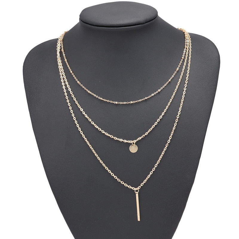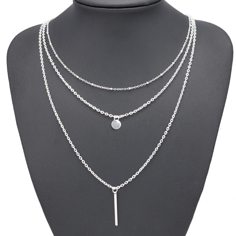 Tenande Simple Style Multi Layer Statement Charm Jewelry Small Sequins Stripe Necklaces & Pendants for Women Party Jewelry Gifts