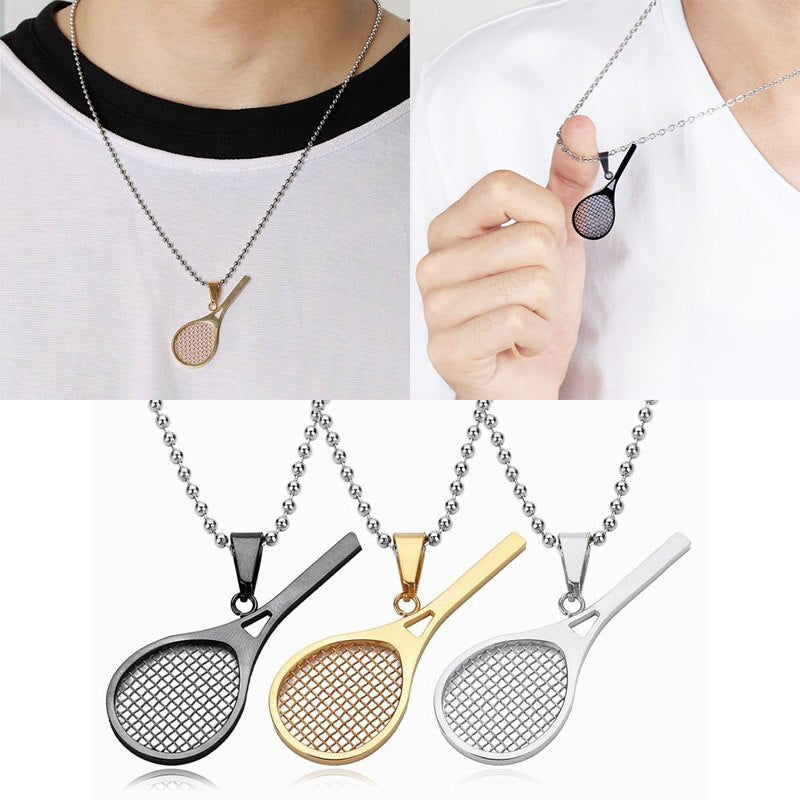 Tennis Racket Pendant Necklace Gift Outdoor Titanium Steel Beads Chain Unisex Chain Trendy Choker