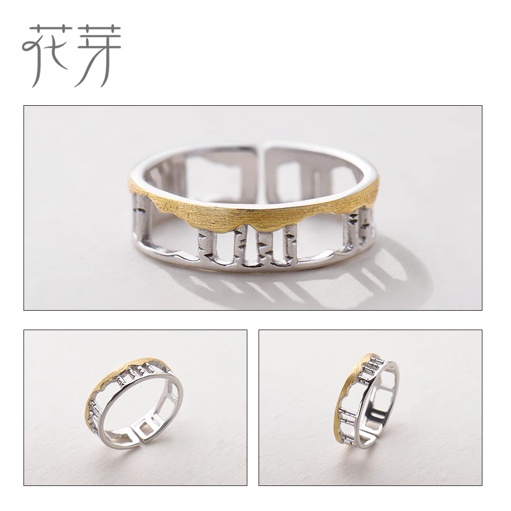 Birch Forest Design Rings s925 Silver Hollow Golden Leaves Finger Ring for Women Ladies Love Story jewelry gift
