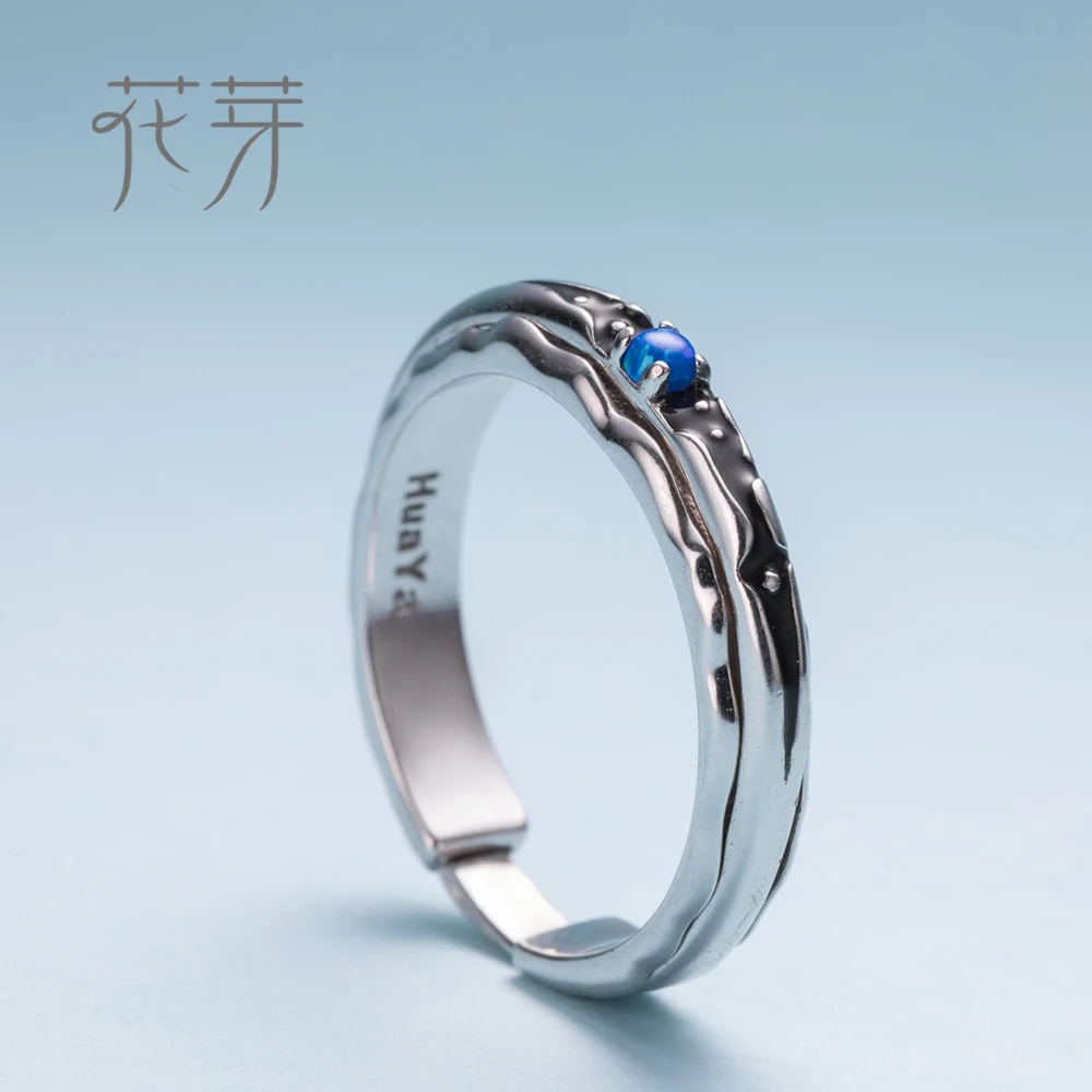 Stellar System Design Blue Opal finger Ring Female s925 silver simple Rotatable Rings for women elegant jewelry gift
