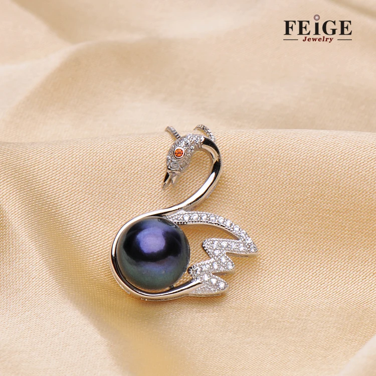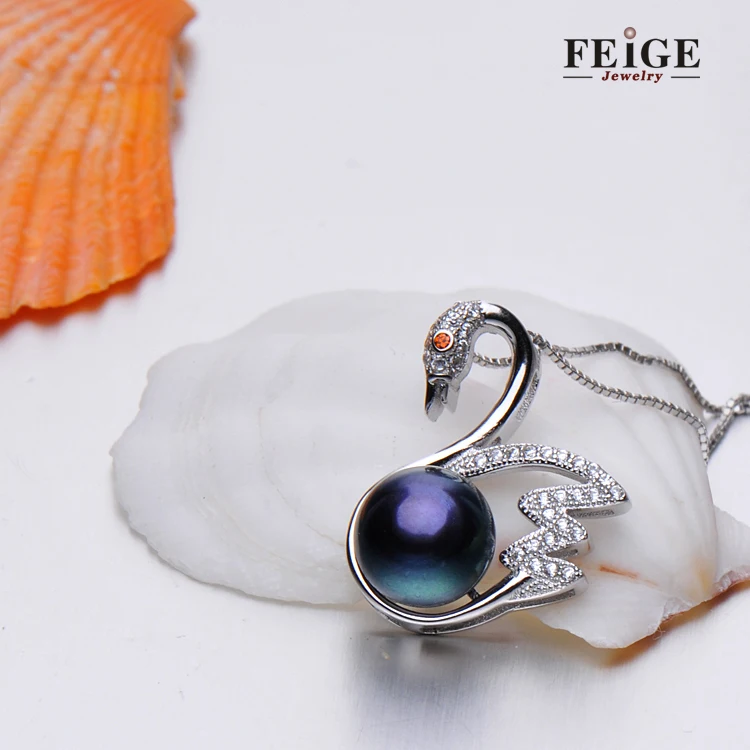 Swan Black Pearl Pendant Necklaces for Women Vintage Fine Jewelry 9-10MM Pearl Real 925 Sterling Silver Chain FEIGE