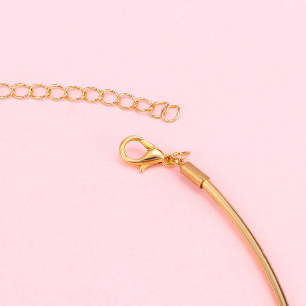 Thin Metal Choker Necklace Bib Neck Collar Hoop Circle Open Cuff Necklaces Women Men Punk Jewelry Gift
