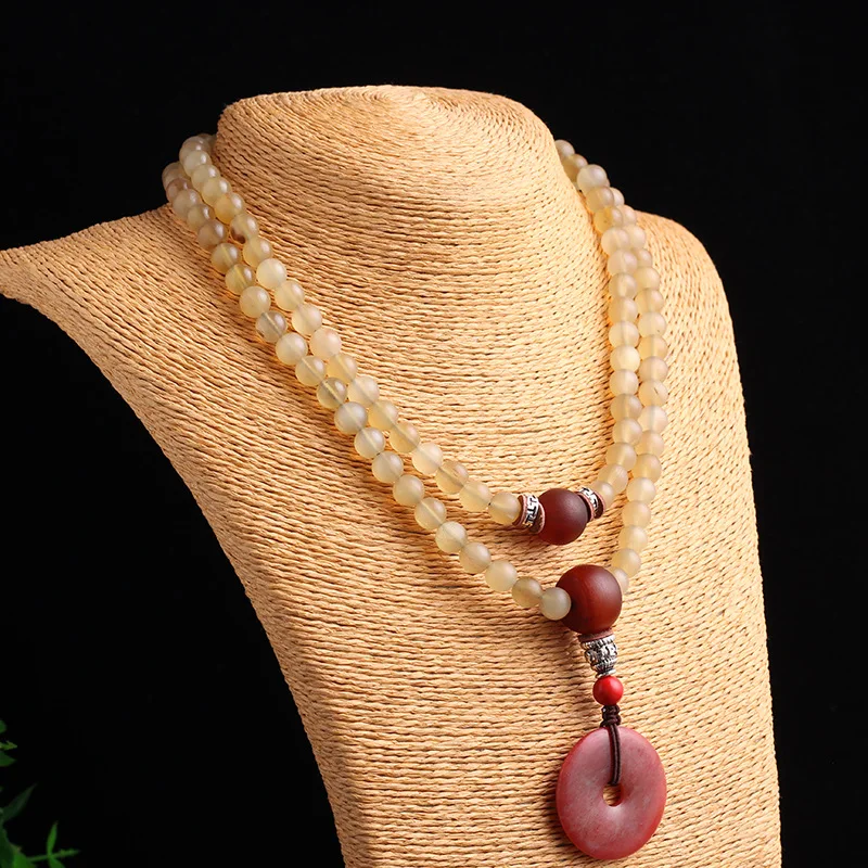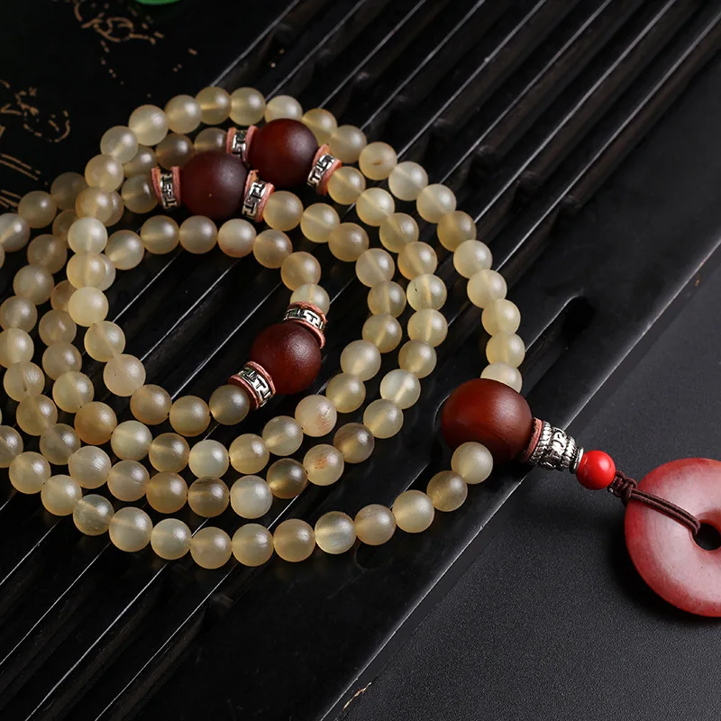 Tibetan Old Sheep Horn 108 Prayer Beads Natural Born Horn with Pingankou Drop pendant Mala Buddha Prayer