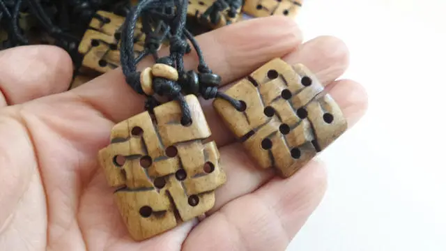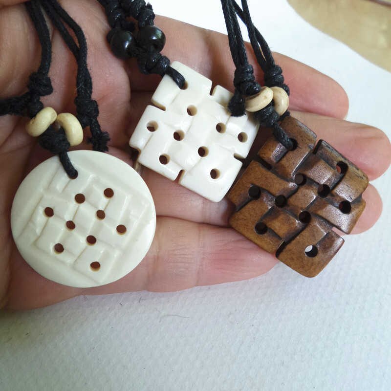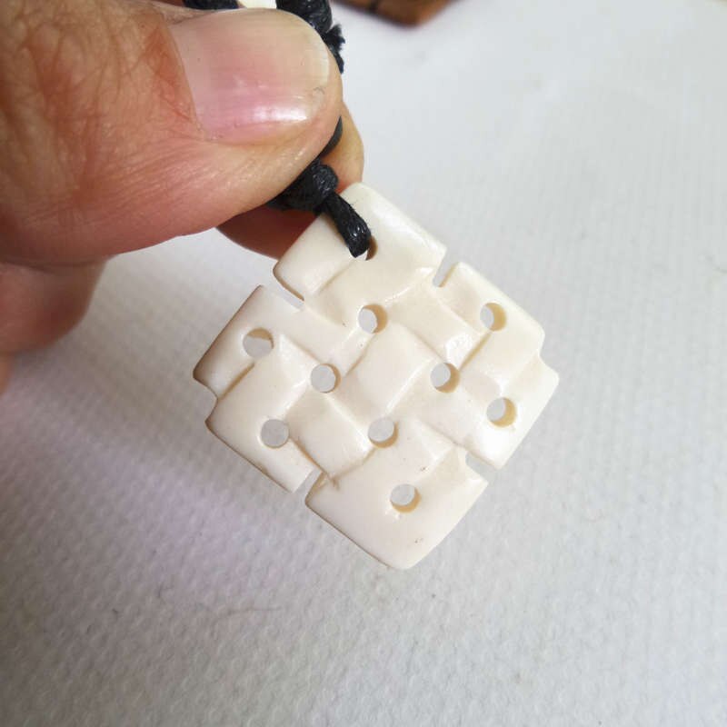 TNL538 Tibetan Yak Bone Hand Carved Endless Knots Amulets for Man With Adjustable Chain