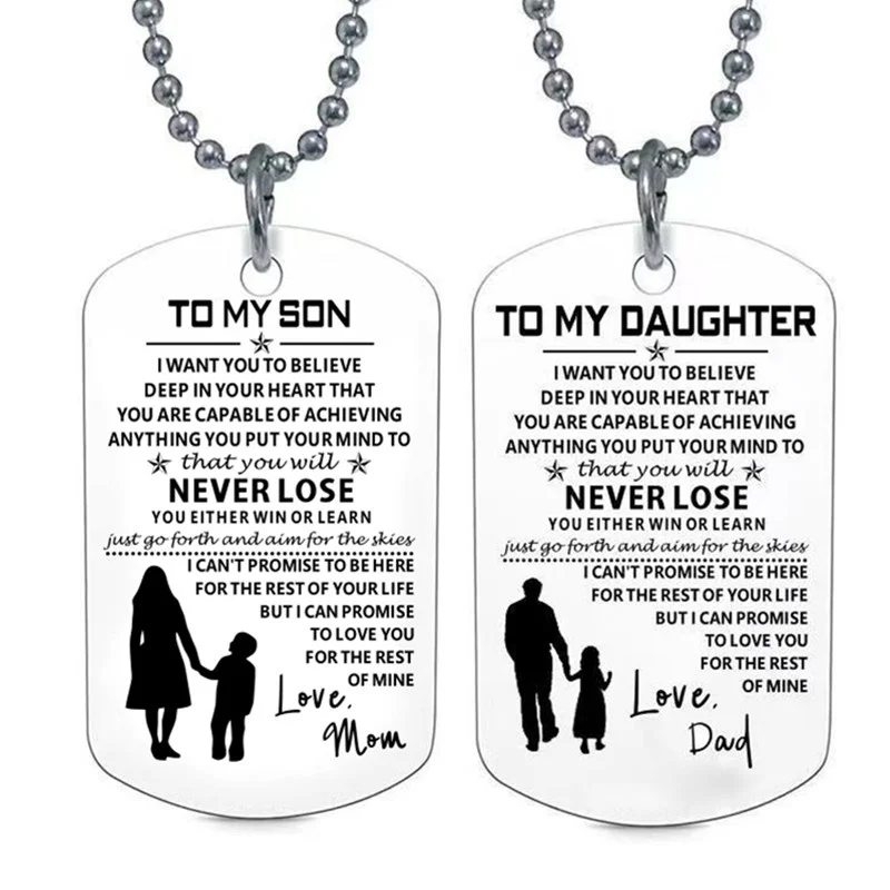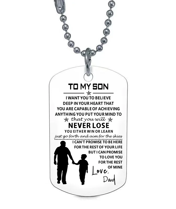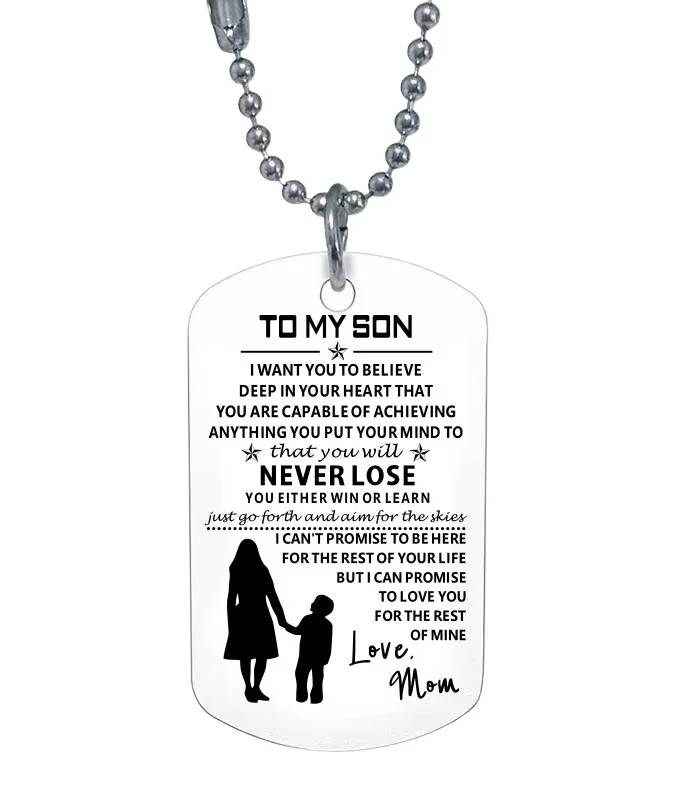To My Son From Mom Dog Tag Military Necklaces for Men Women Birthday Christmas Graduation Gifts Father Daughter Necklace