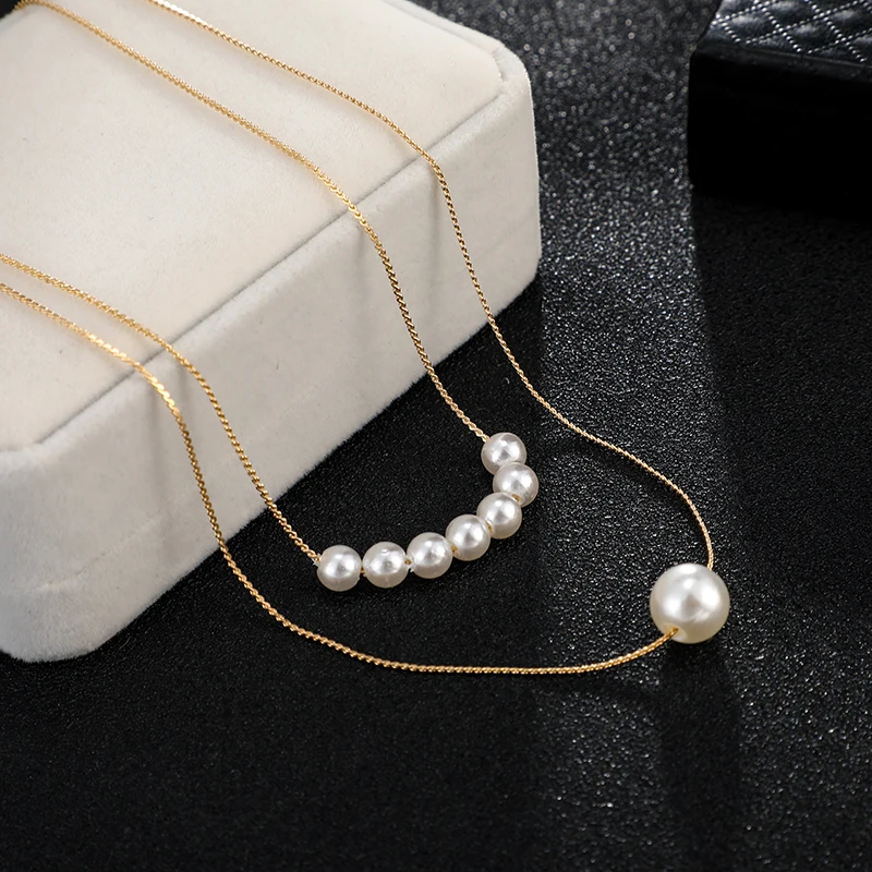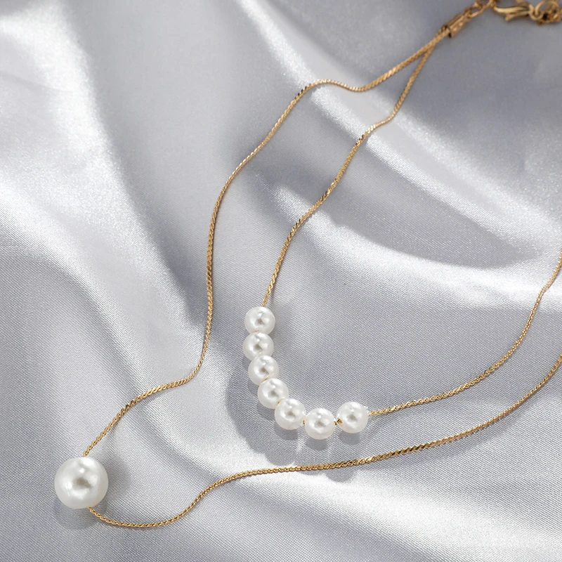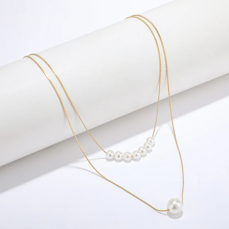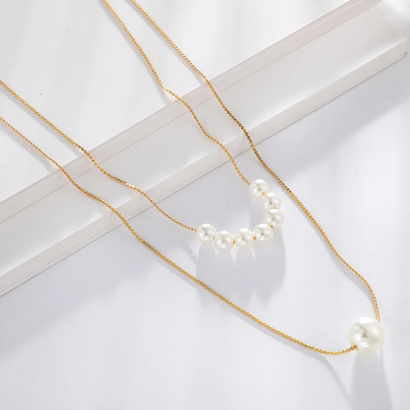 Tocona Factory Price Gold Color Necklace Women Ladies White Pearl Multi-layer Chain Choker Jewelry AccessoriesC07108