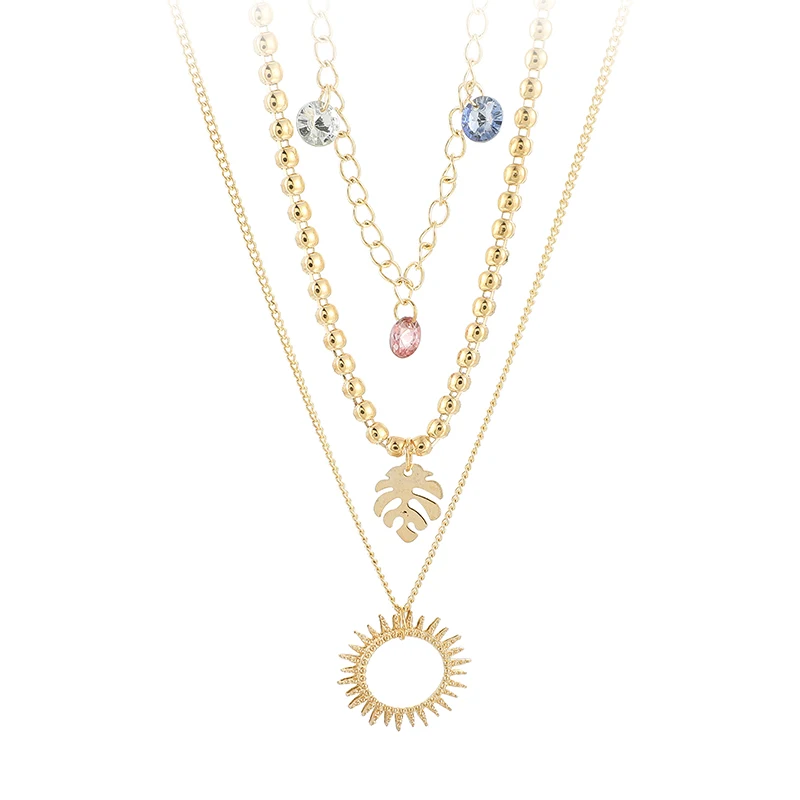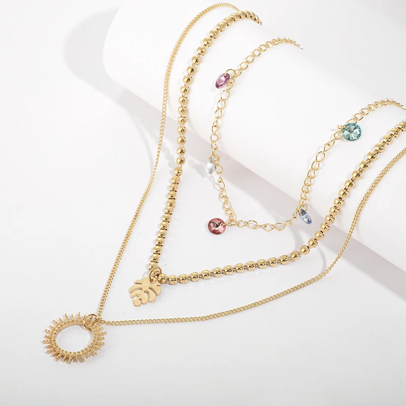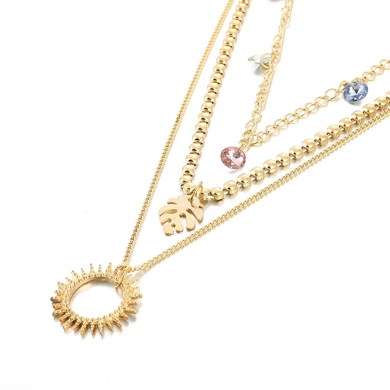 Tocona Gold Sun Pendant Necklace Colorful Crystal Stone Bead Leaf Geomerty for Women Accessories Jewelry Drop Shipping 8874