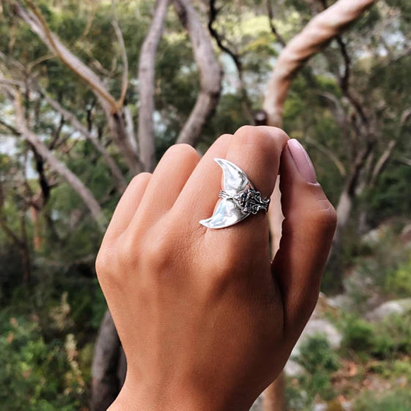 Mystical Mermaid Ring Vintage Antique Silver Whale Tail Midi Finger Knuckle Rings for Women Jewelry Anillos 3903