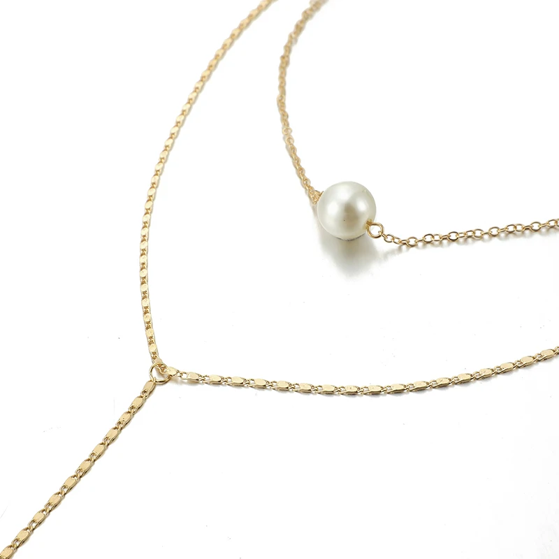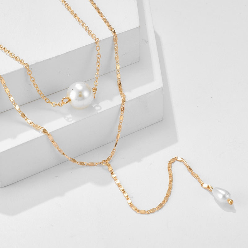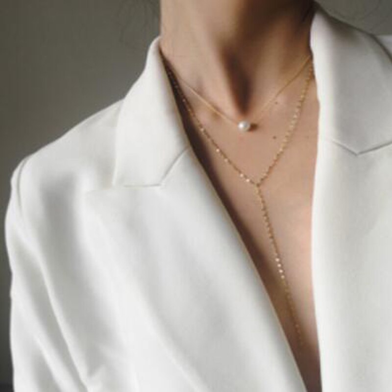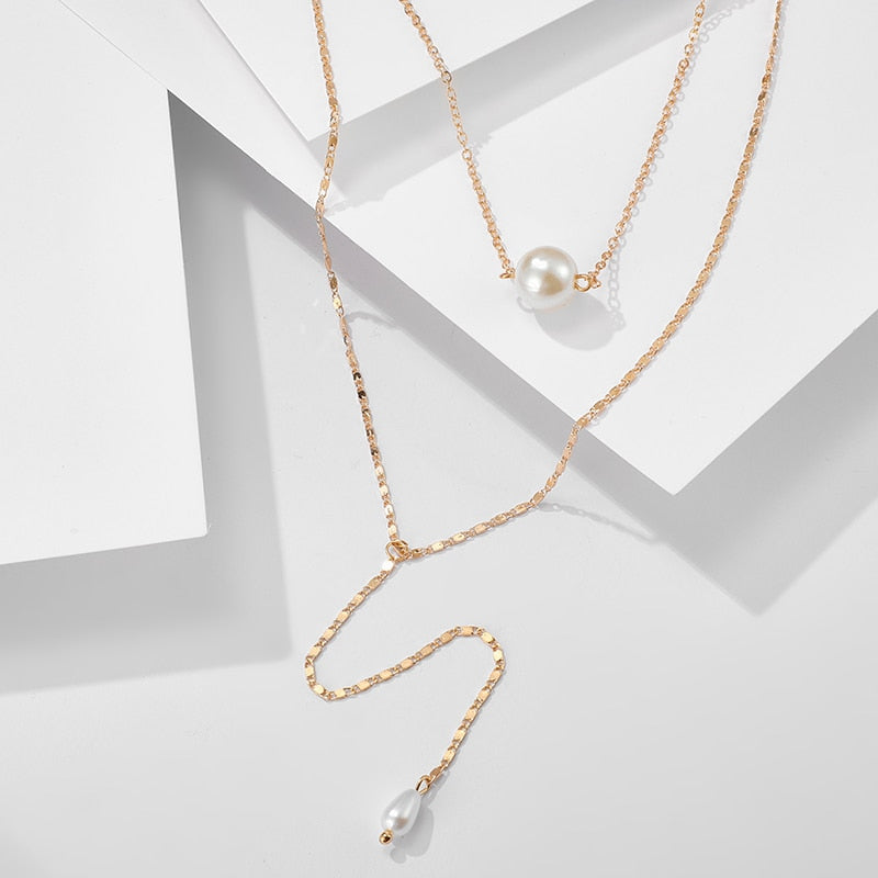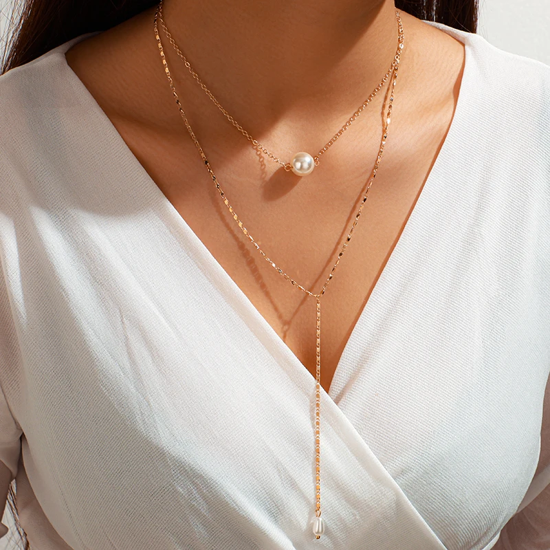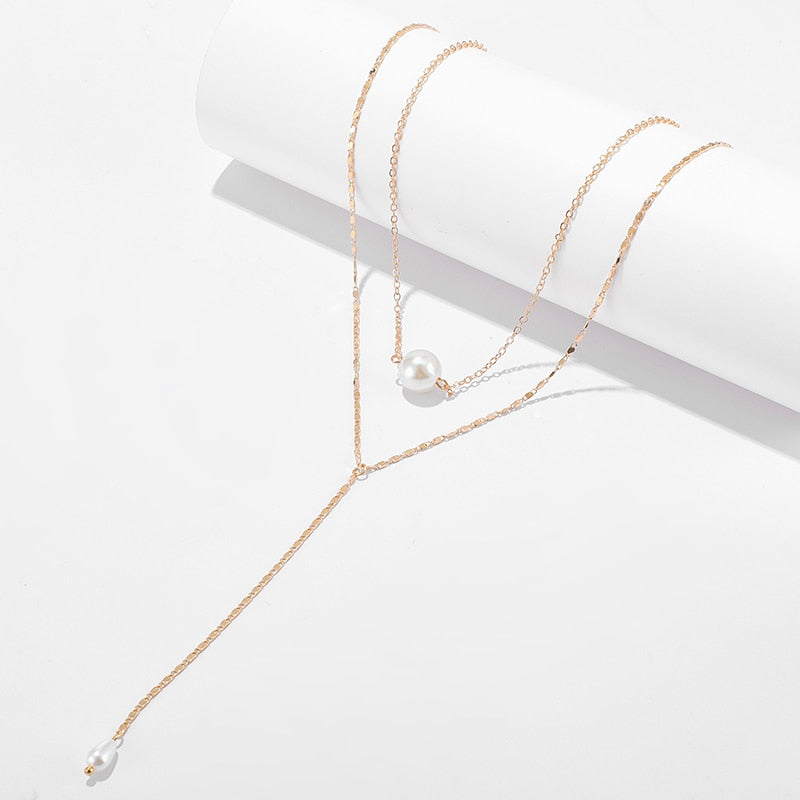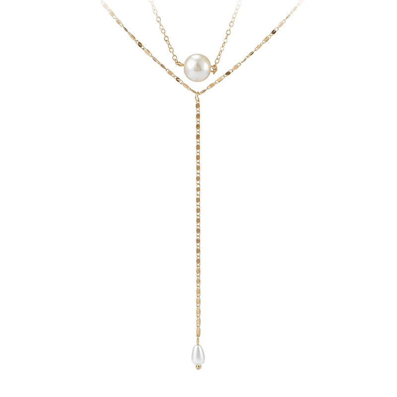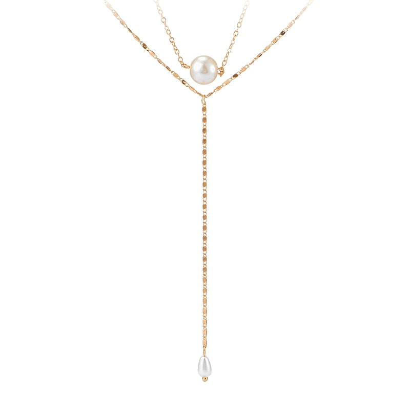 Tocona Simple Long Gold Chain Pendant Necklace Multilayer Pearl Stone Chokcer Jewelry for Women Accessories 8742