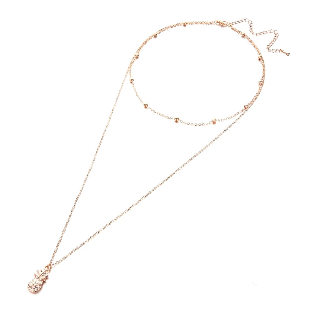 Simple Boho Cute Fruit Pineapple Pendant Necklace Bead Chockers Necklaces for Women Bijoux Layering Chokers