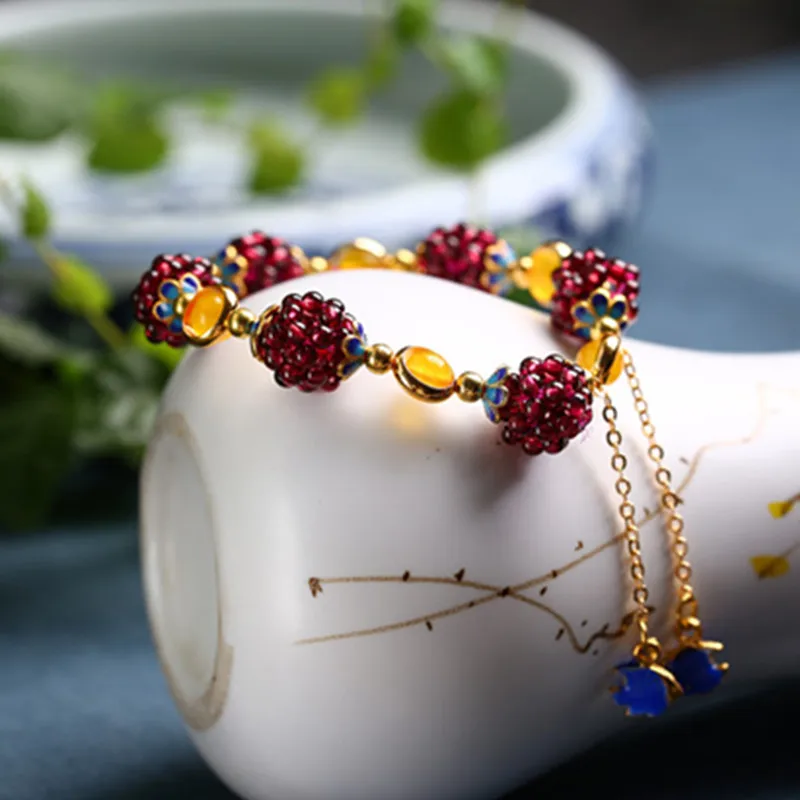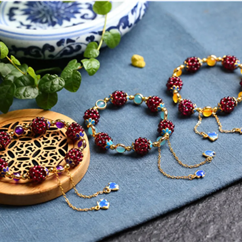 TOP 100% AAA Garnet Bracelet Woven Bracelet Femme Wine Red Bracelet Crystal Fine Jewelry Women Erkek Bileklik Stone Gift