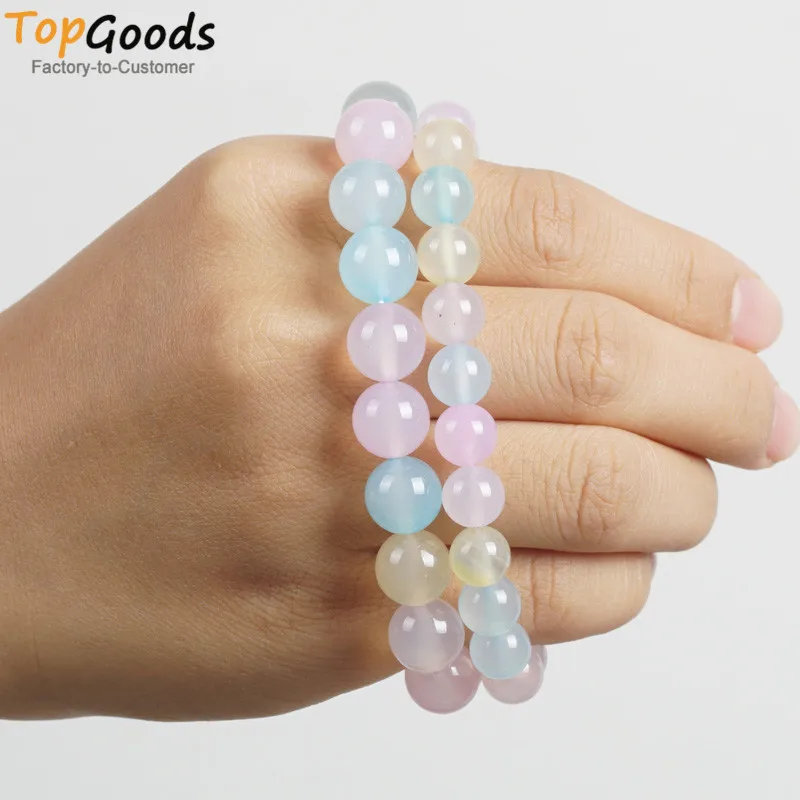 TopGoods Natural Morgan Agate Bracelet Women Stone Jewelry 8/10mm Elastic Bead Charms Bracelets Pulseira Masculina for Men