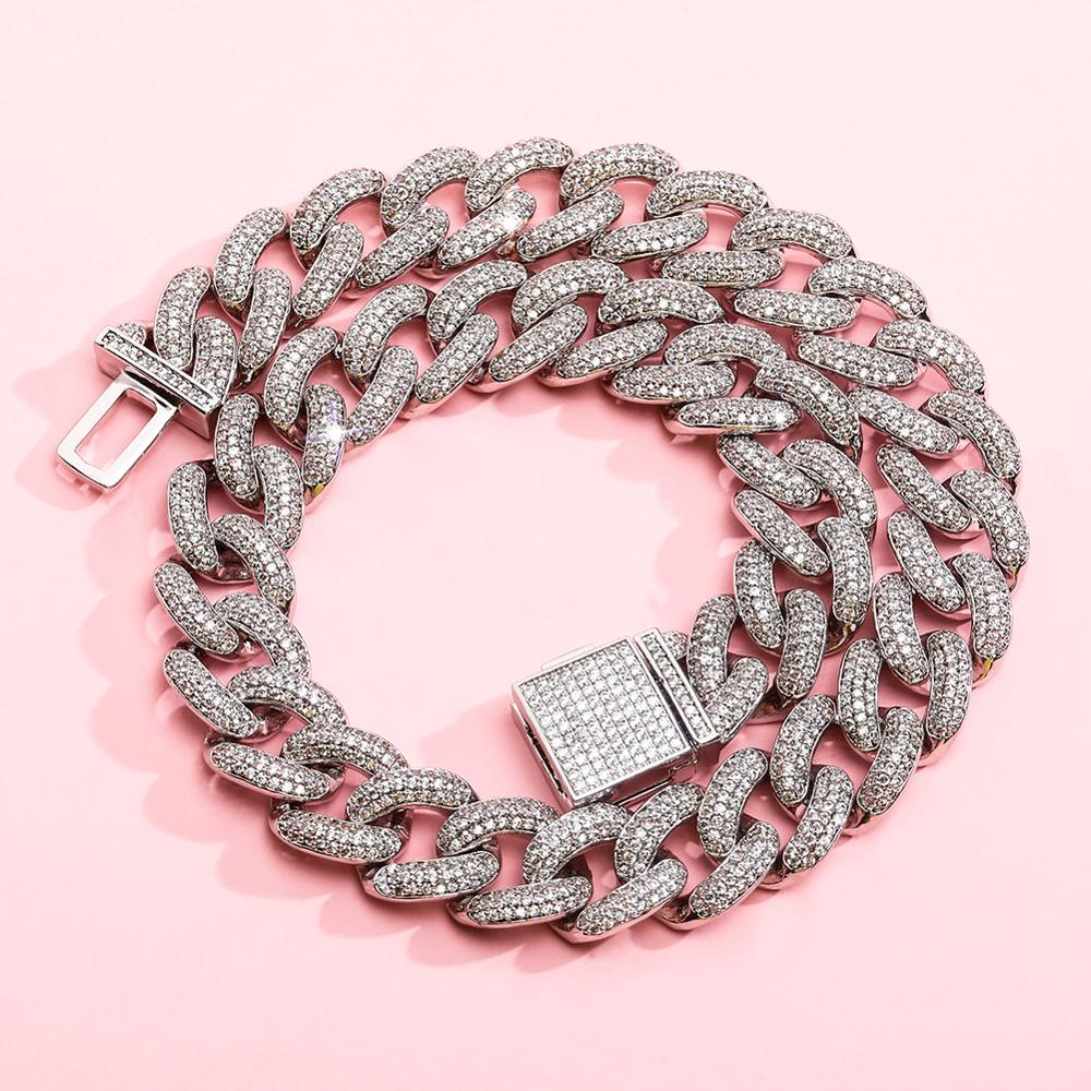 TOPGRILLZ 14mm Chokers Necklace Box Clasp Micro Pave Cuban Link Necklaces Bling Jewelry Gift For Women 14"15"