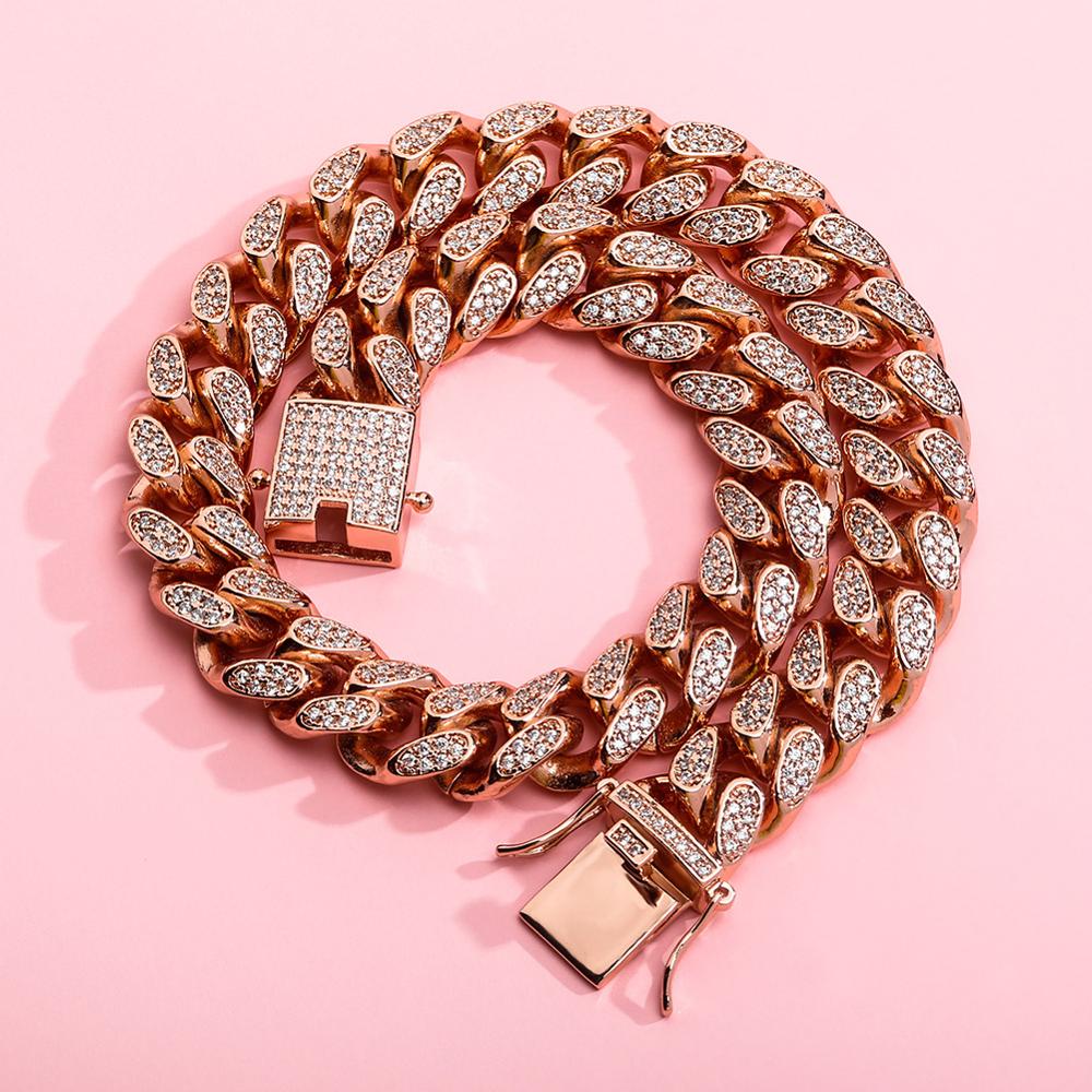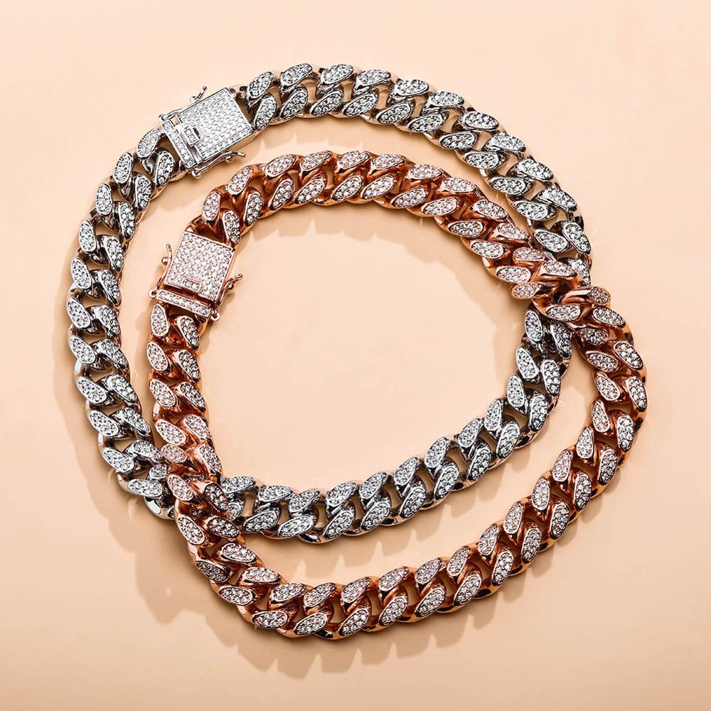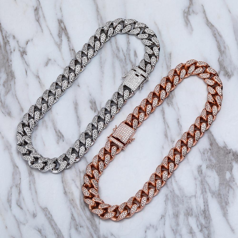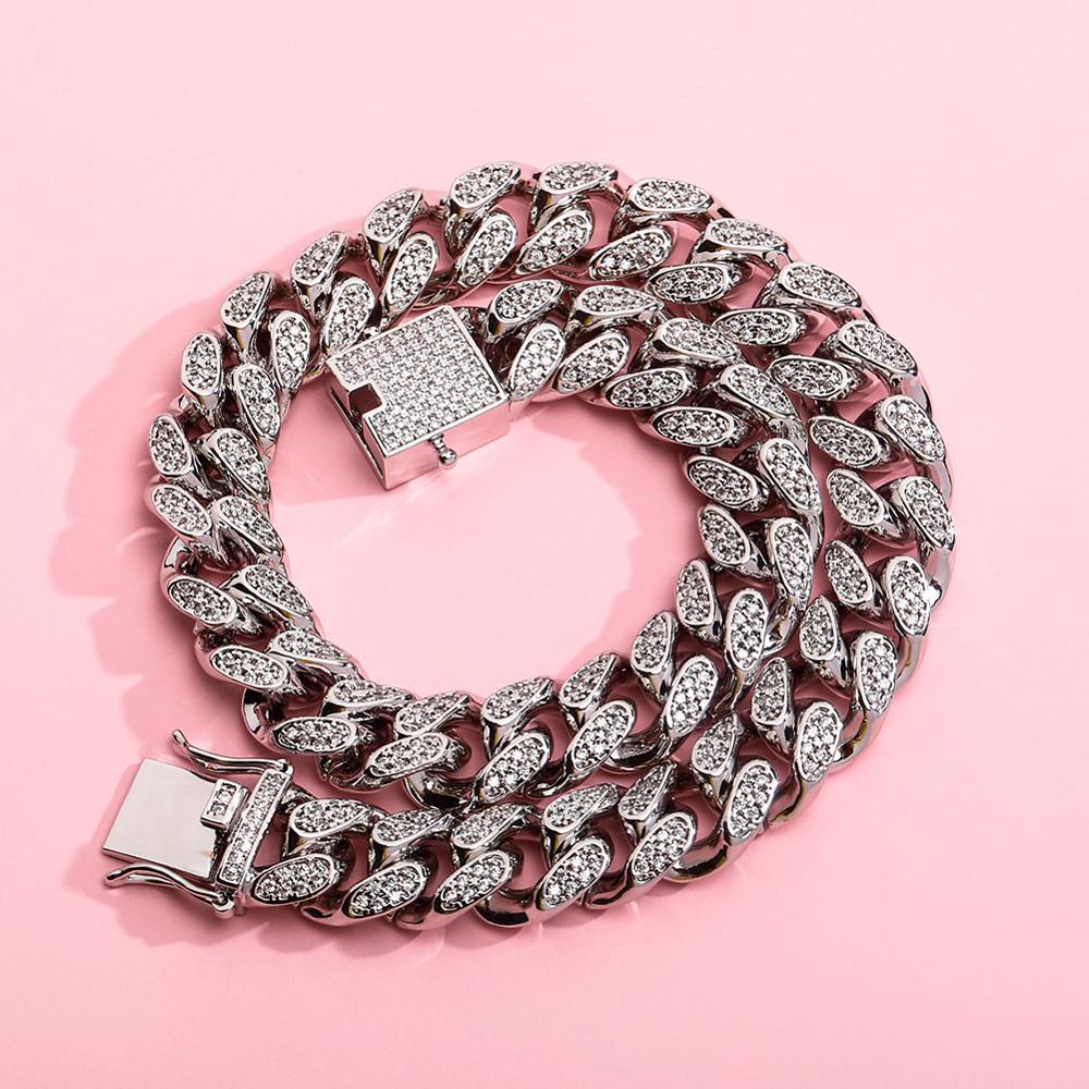 TOPGRILLZ 14mm Chokers Necklace Miami Cuban Link Chain Necklace Iced Cubic Zircon Bling Necklaces Jewelry Gift For Women 14"15"