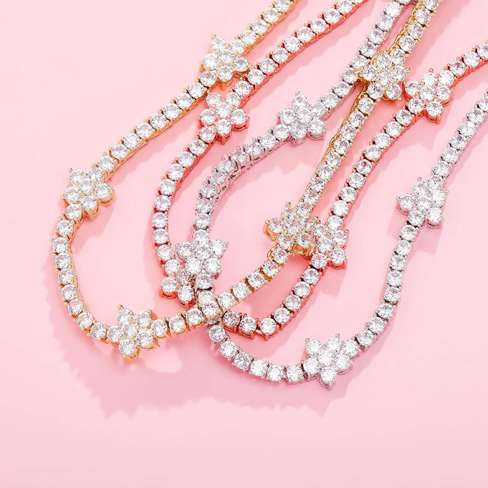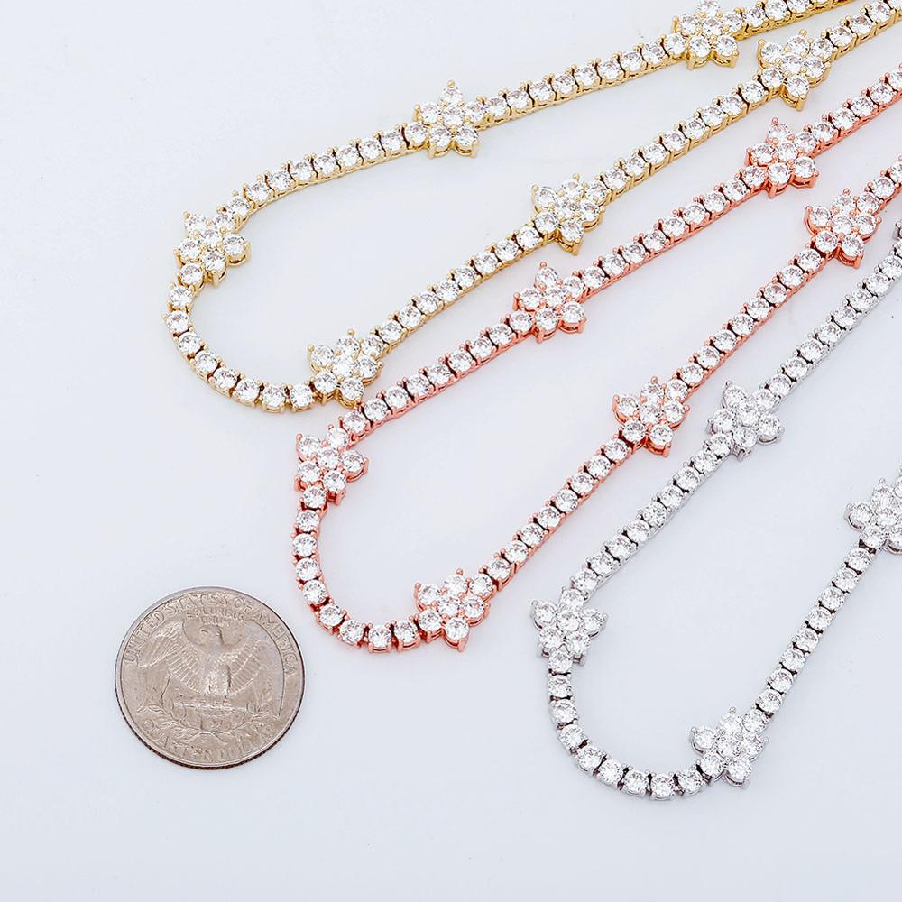TOPGRILLZ 5MM Tennis Chain Flower Choker Chain Necklace Iced Out Cubic zirconia Bling Hip Hop Charm Jewelry Gift For Women