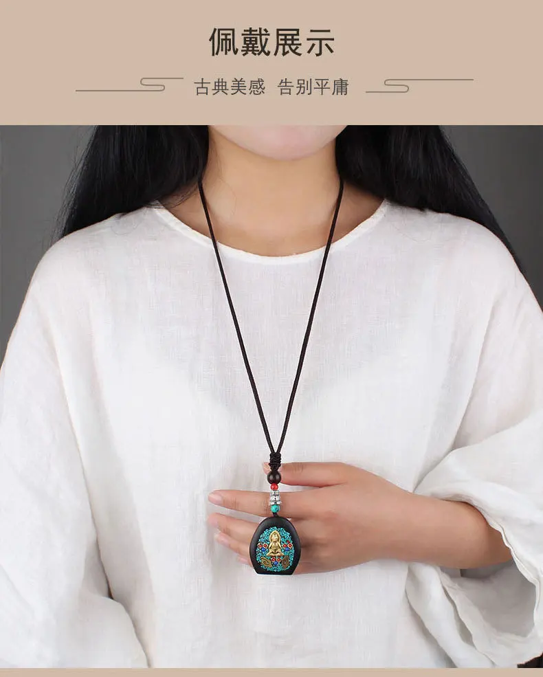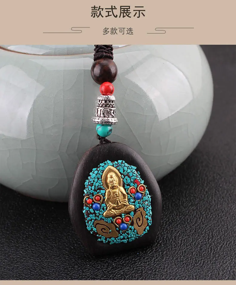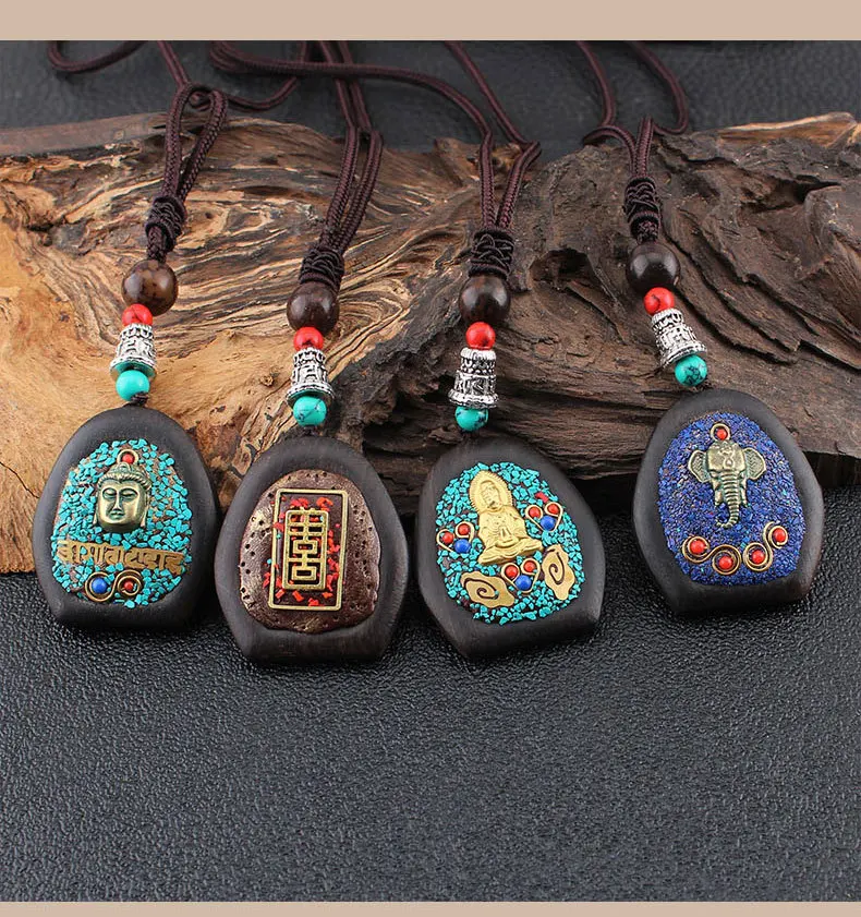 Totem exotic Designs ethnic Nepal copper sandalwood pendants jewelry Buddha vintage necklace Bodhi Seed women