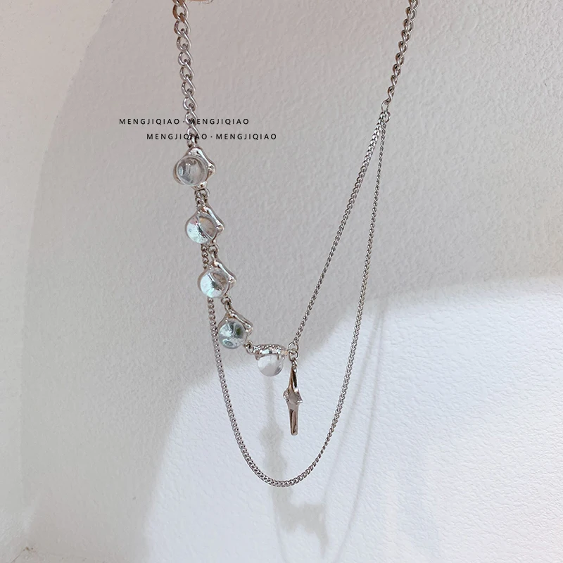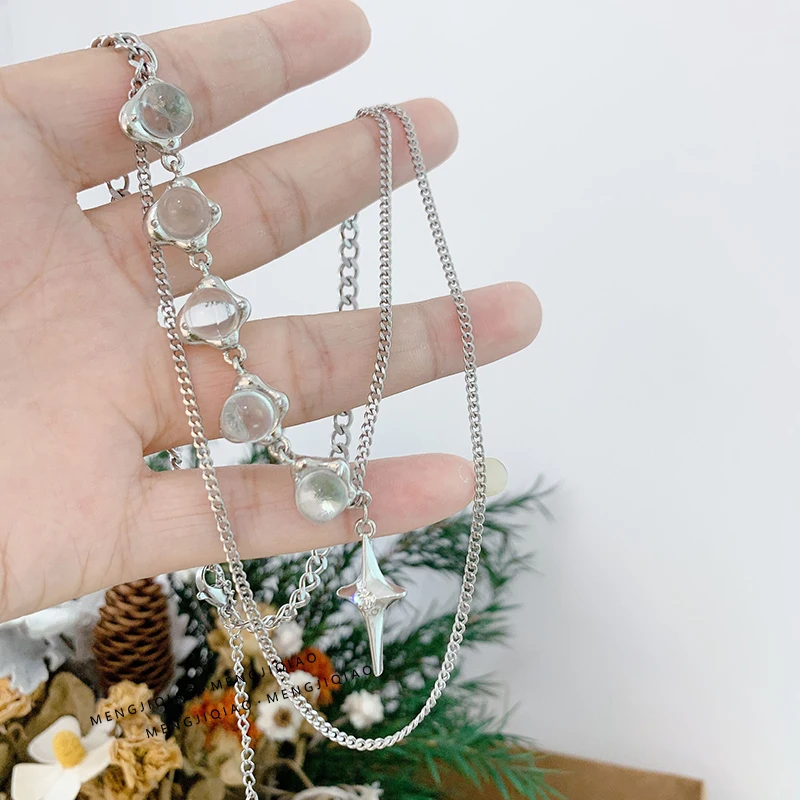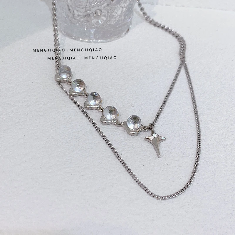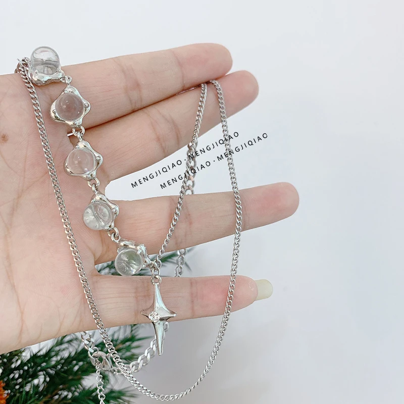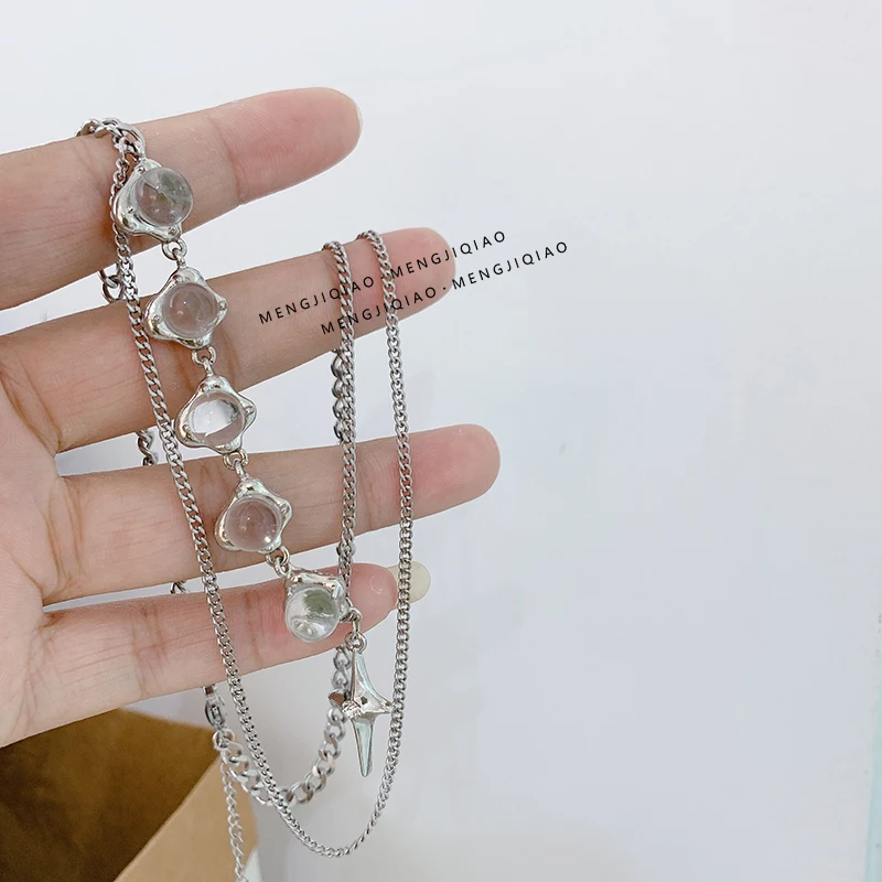 Transparent Beads Stitching Chain Cross Pendant Necklaces Hiphop Punk Personality Clavicle Chain Sweet Charm Jewelry