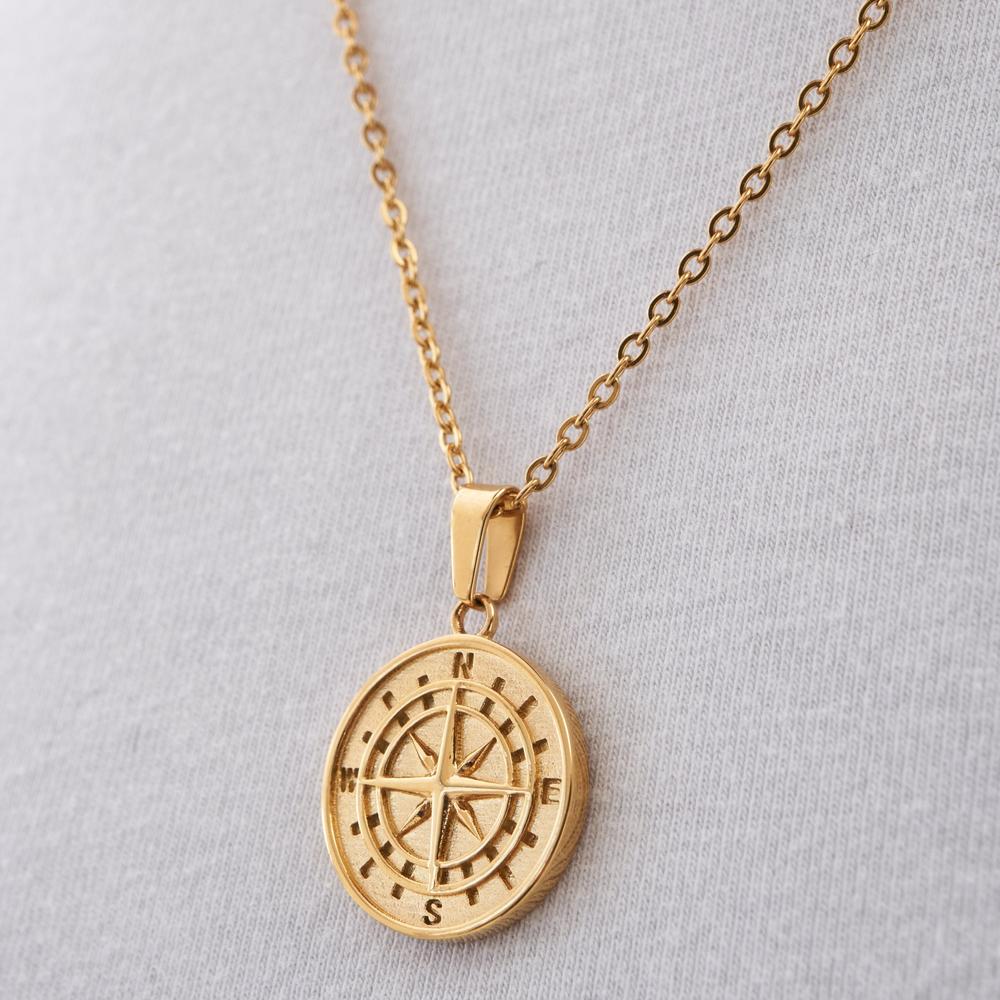 Travel Jewelry Pendentif Boussole Collier Gold Stainless Steel Compass Charms Necklace Coin Shape North Star Pendant Chains Gift