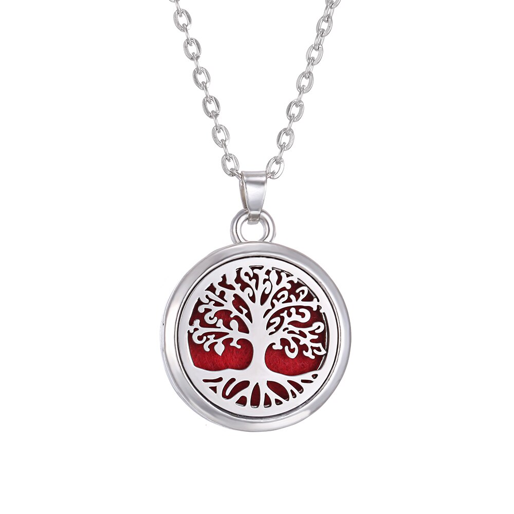 Tree of Life Aromatherapy Necklace Magnetic Essential Oil Diffuser Perfume Necklaces Box Locket Pendant Aroma Diffuser Necklace