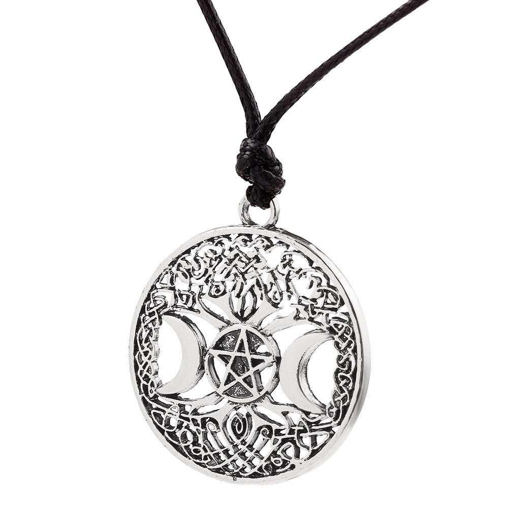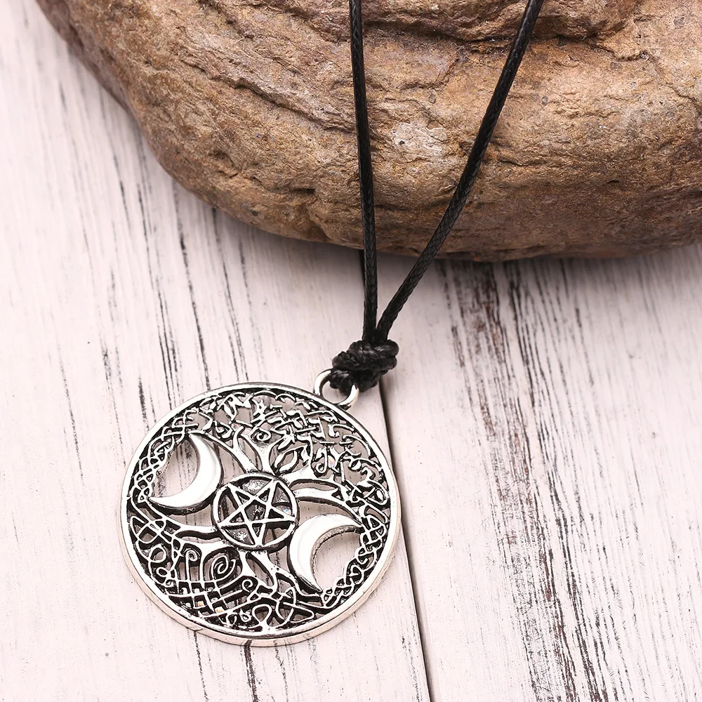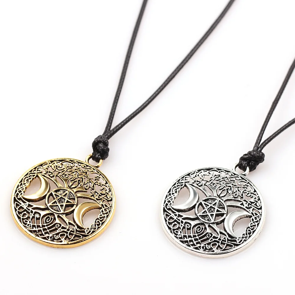 Tree of Life Star Moon Round Pendant Necklace Women's Necklace Metal Viking Jewelry Party Accessories Gift