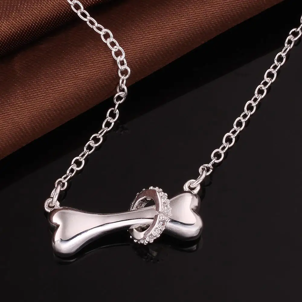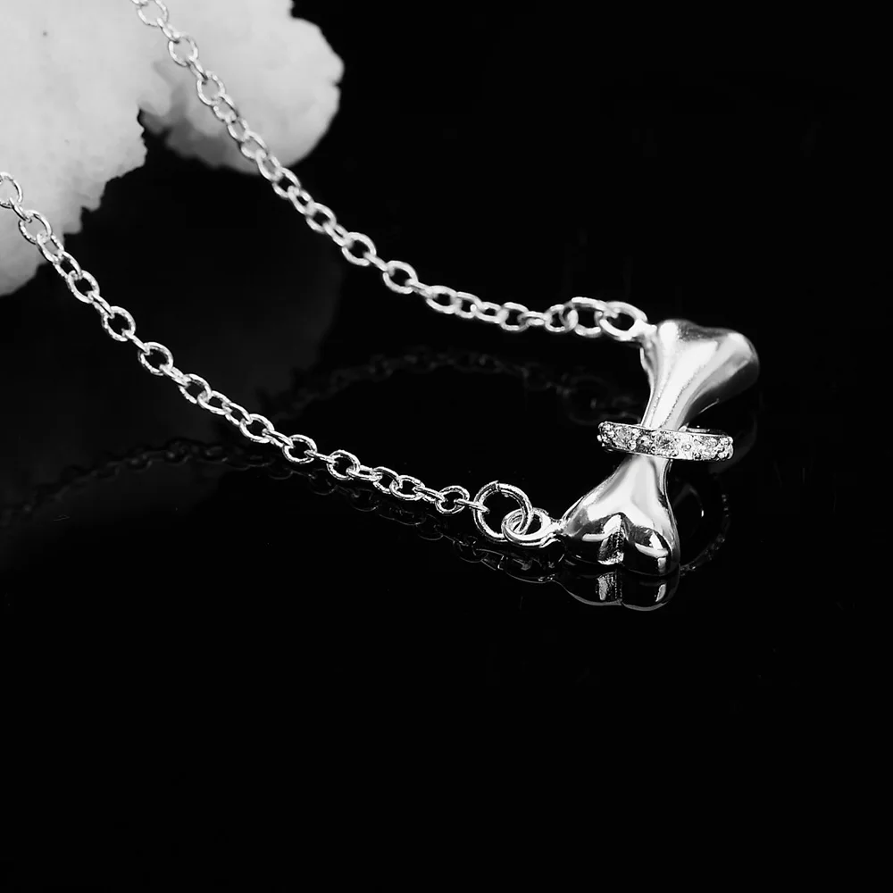 trend 925 Stamped silver fine Crystal Dog bones Pendant Necklaces for woman charm party Jewelry Christmas gifts