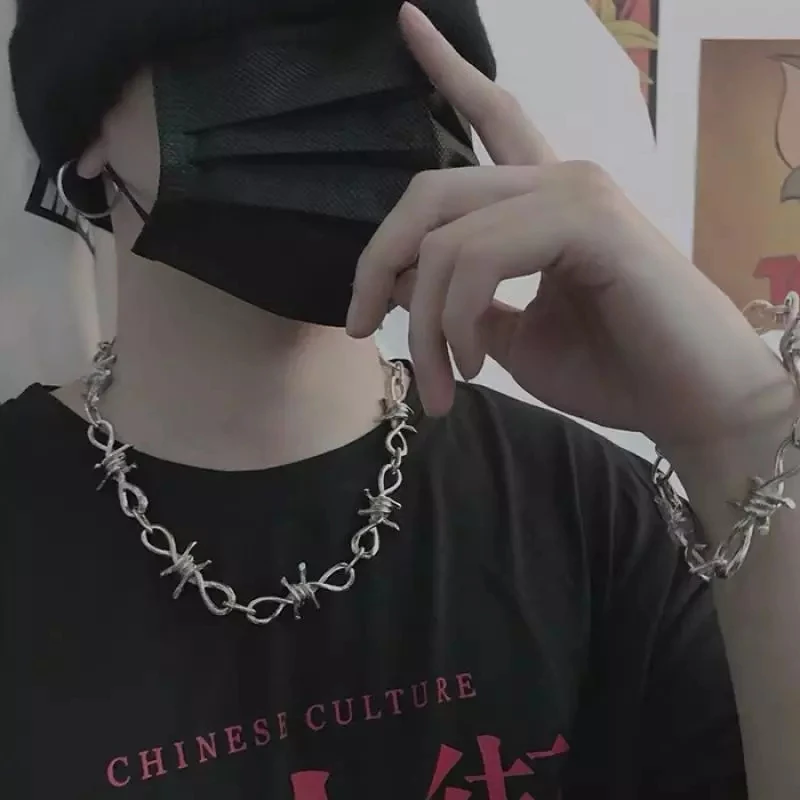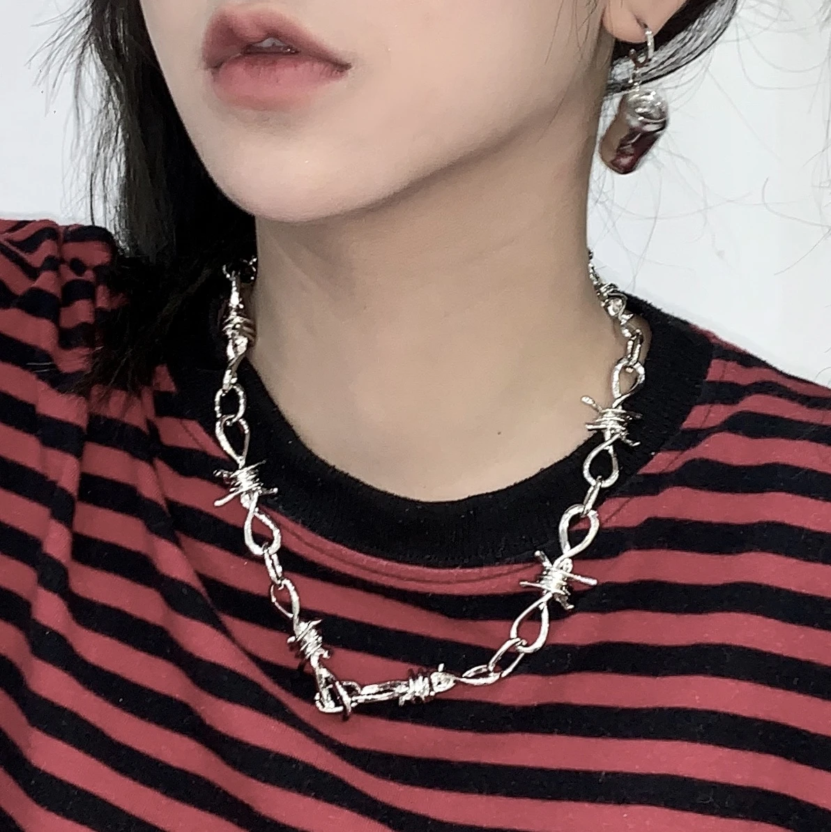 Trend Punk Style Rap Street Hip-hop Jewelry Necklace Thorns Choker Short Chain Necklace Aesthetic Men Women Accessories