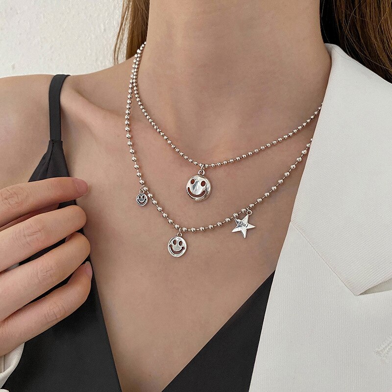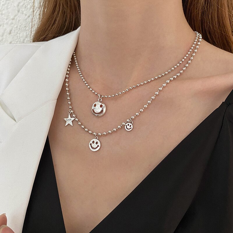 Trend Smile Pandant Necklace Ins Korean Retro Clavicle Chain Hip Hop Women's Necklaces 2021 Trendy Jewelry