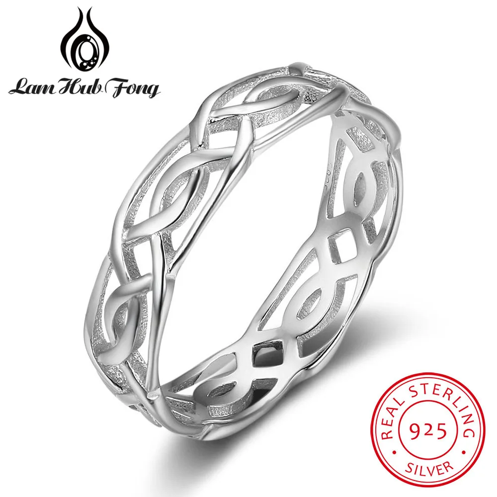 Trendy 100% Real 925 Sterling Silver Size Rings for Women Female Twisted Woven Design Finger Ring Jewelry Gift (Lam Hub Fong)