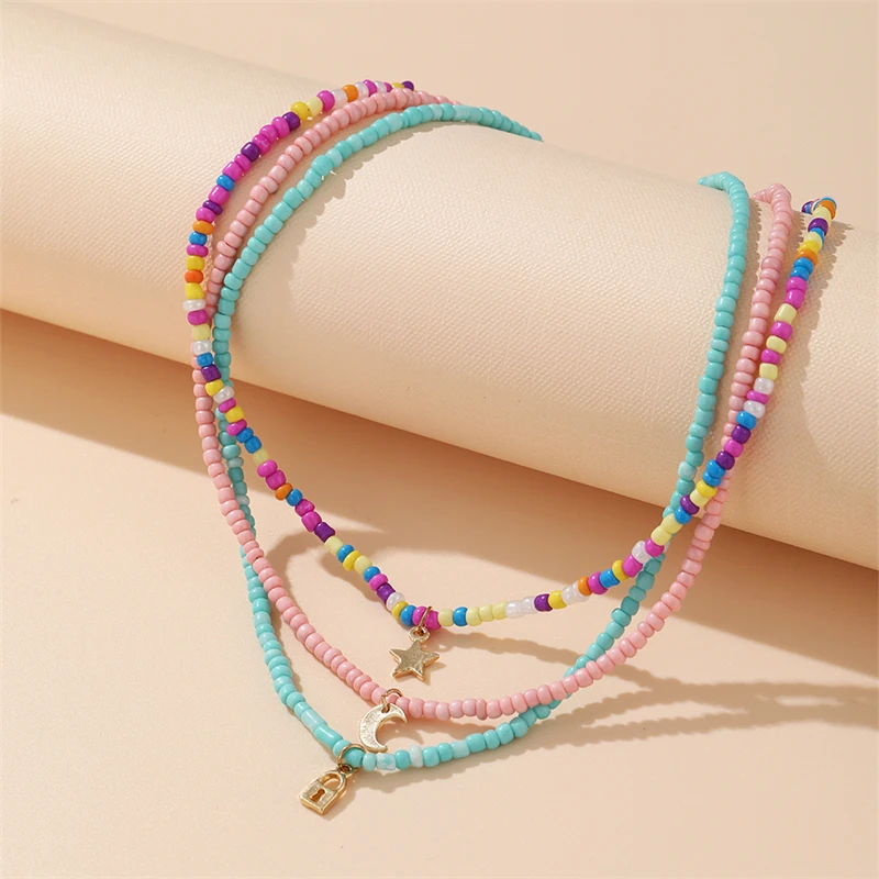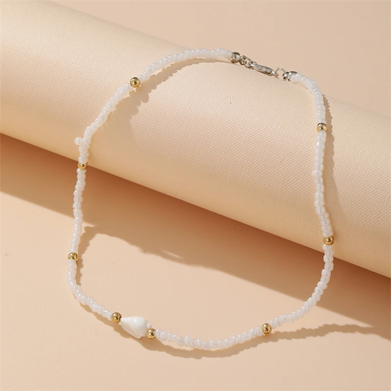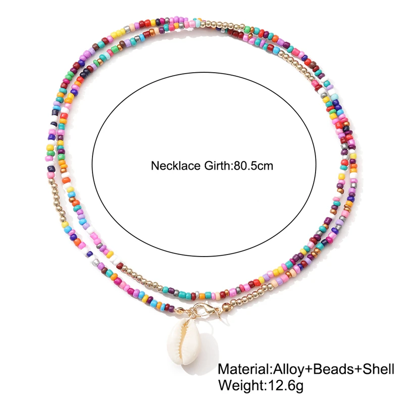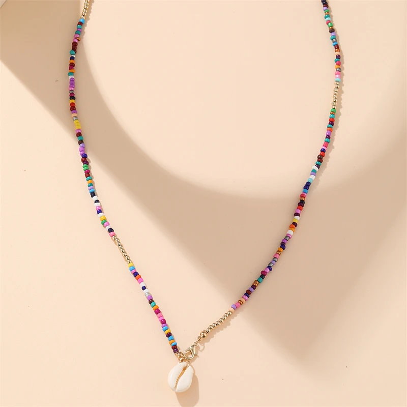 Trendy Bohemian Colorful Bead Shell Necklace for Women Summer Short Beaded Collar Clavicle Choker Necklace Female Jewelry
