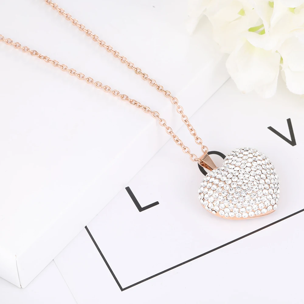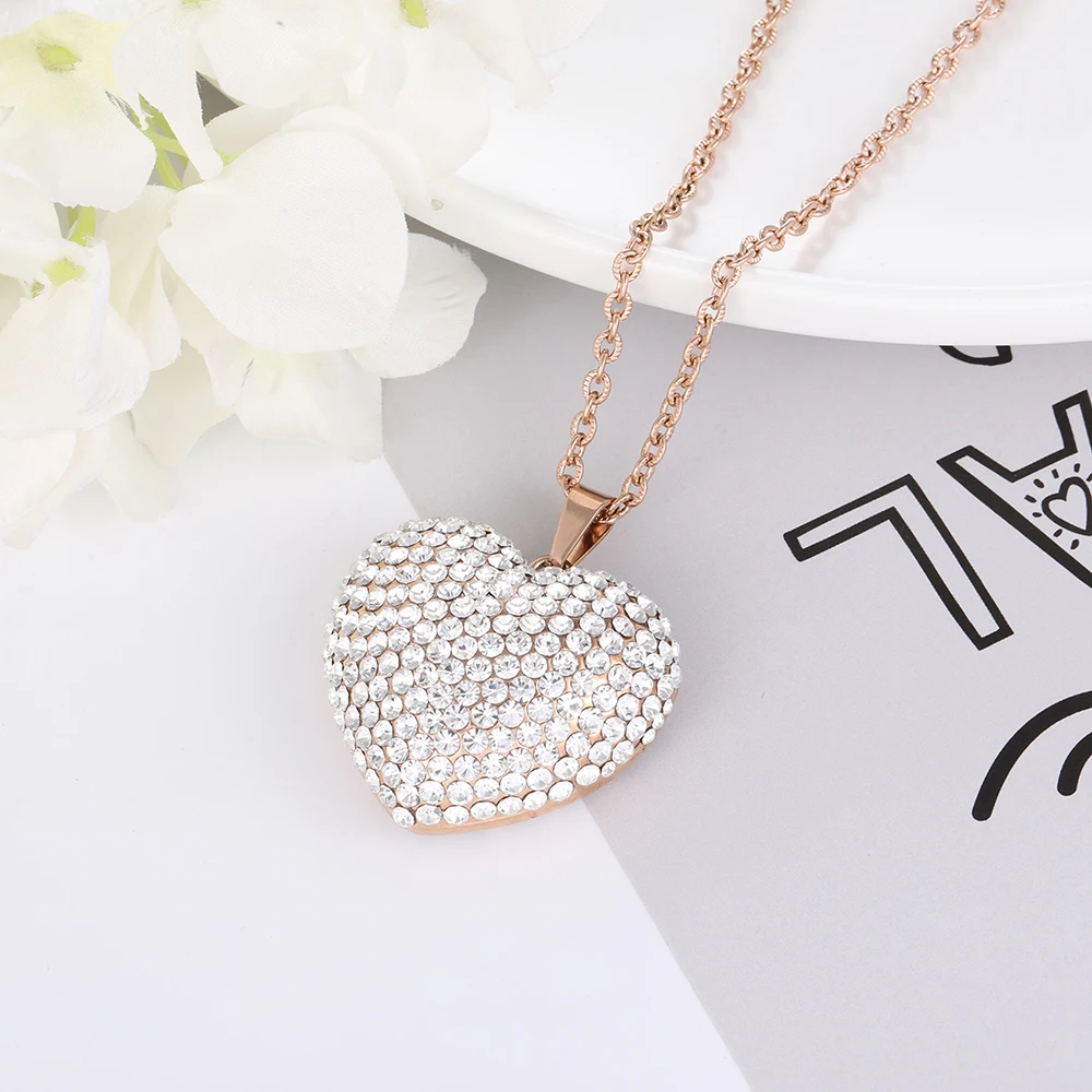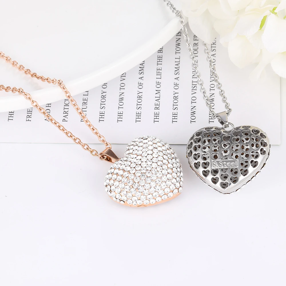 Trendy Crystal Love Heart Pendant Neckalce for Women Stainless Steel Chain Shiny Rhinestone Jewelry Lover Pretty Gift
