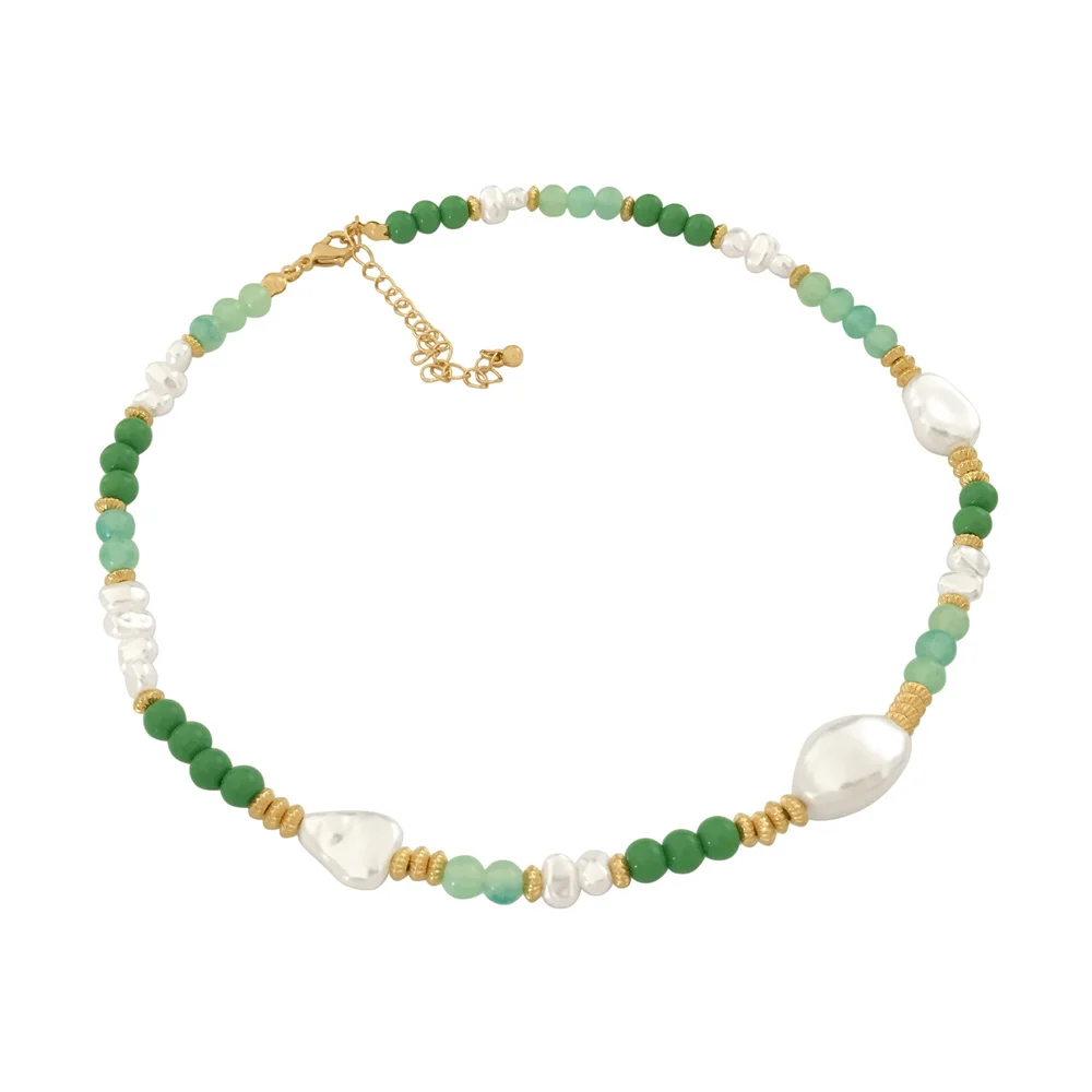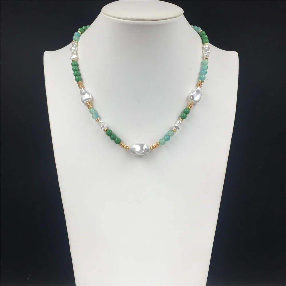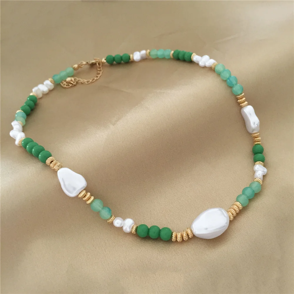 Trendy Elegant Gold Color Green Bead Irregular Pearl Strand Necklace For Women Girl Office Party Anniversary Gorgeous Jewelry