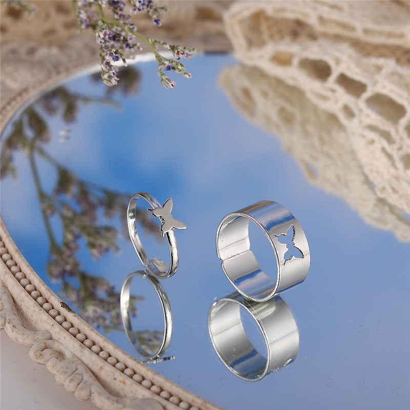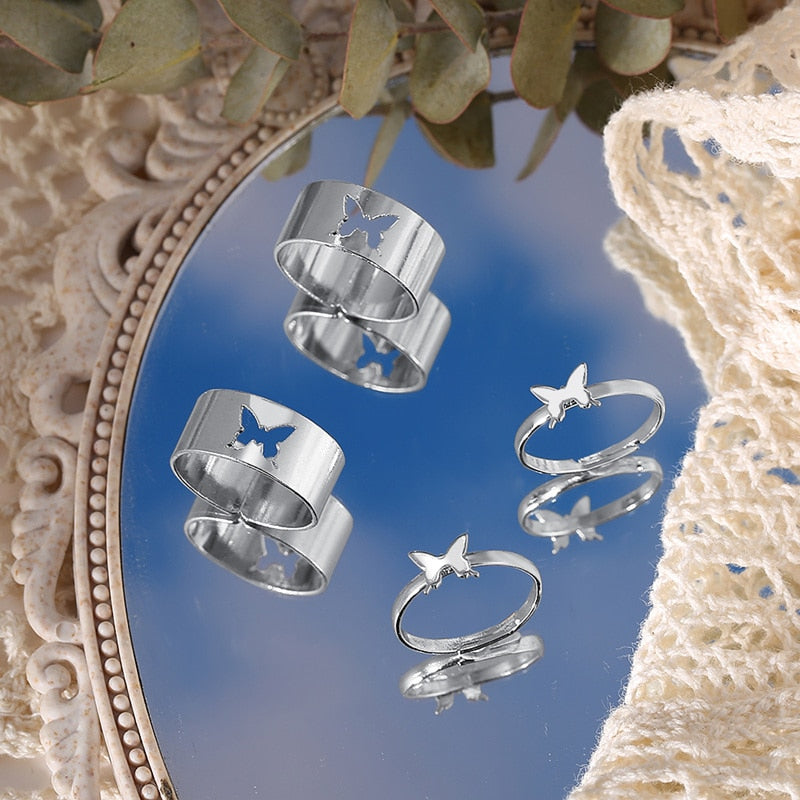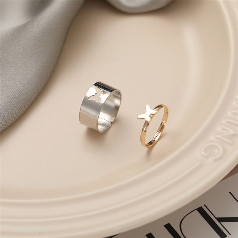 Trendy Gold Butterfly Rings For Women Men Lover Couple Rings Set Friendship Engagement Wedding Open Rings 2021 Jewelry