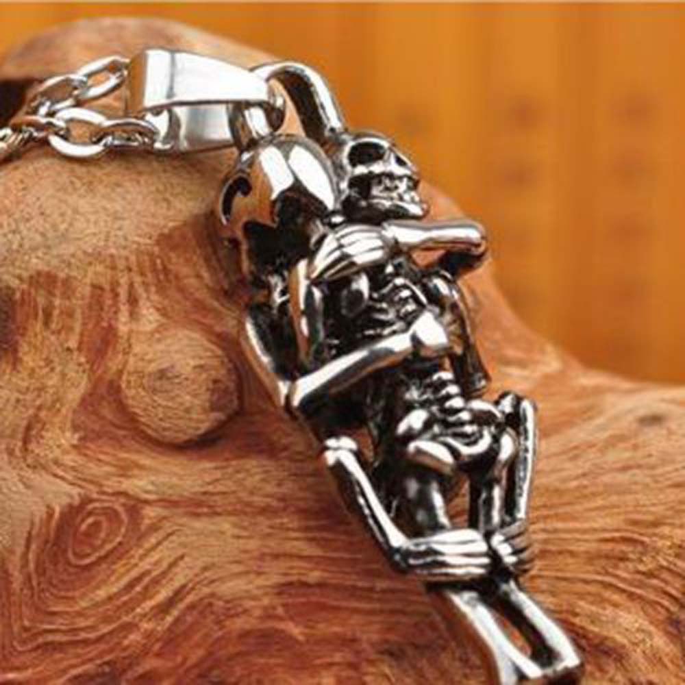 Trendy Goth Men Infinity Black Stainless Steel Love Necklace Couple Skulls Hug Skeleton Chain Pendant necklace Jewelry Gifts