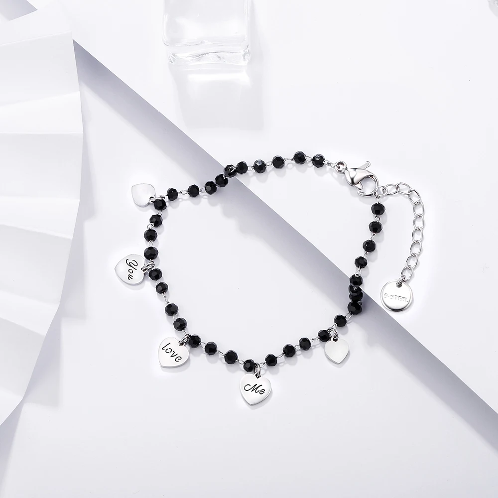 Item : LOVE ME Heart Charm Beaded Bracelet