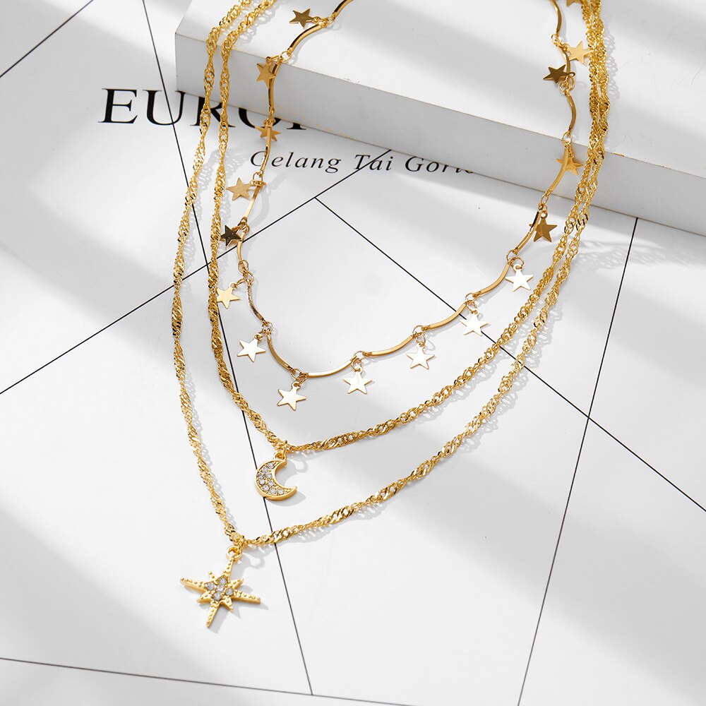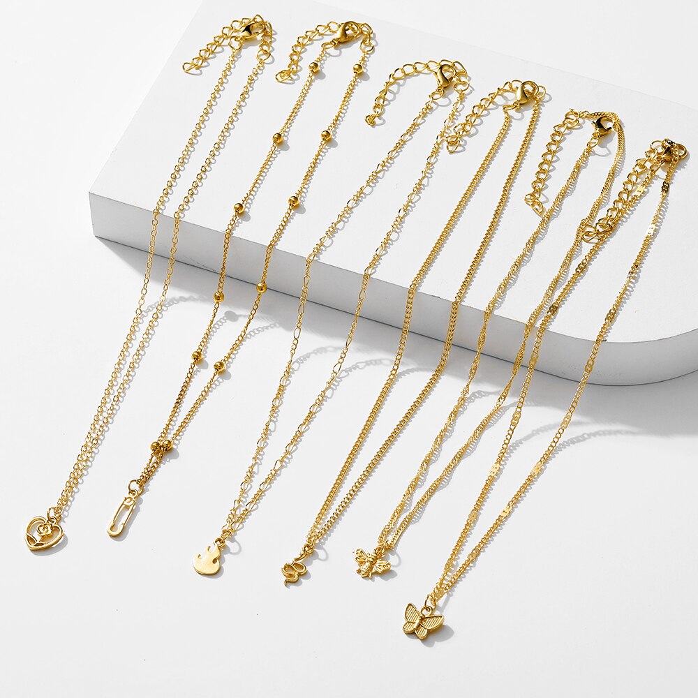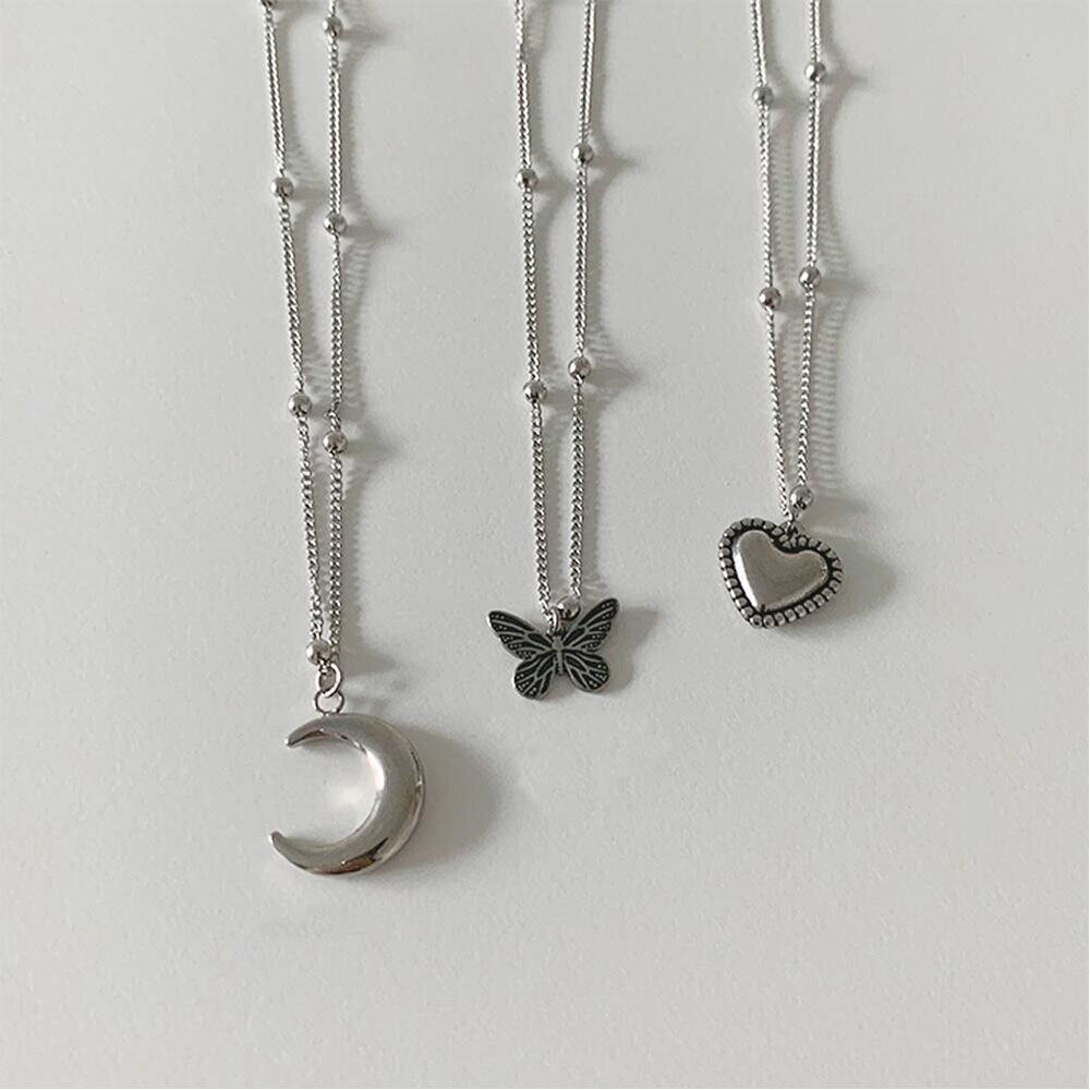 Trendy Metal Butterfly Moon Heart Pendant Necklace for Women Multilayer Necklace Set Gift Girl Jewelry