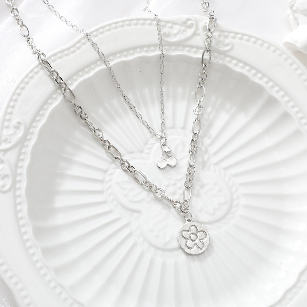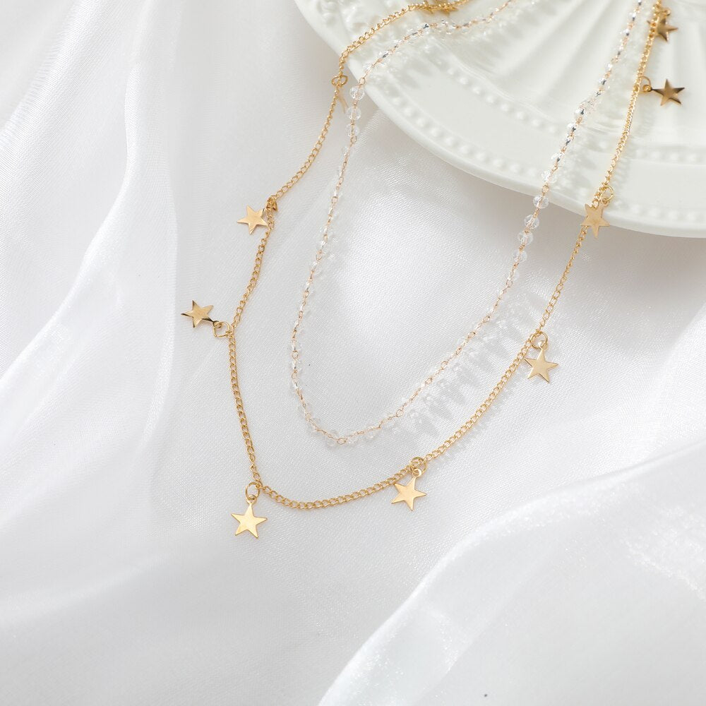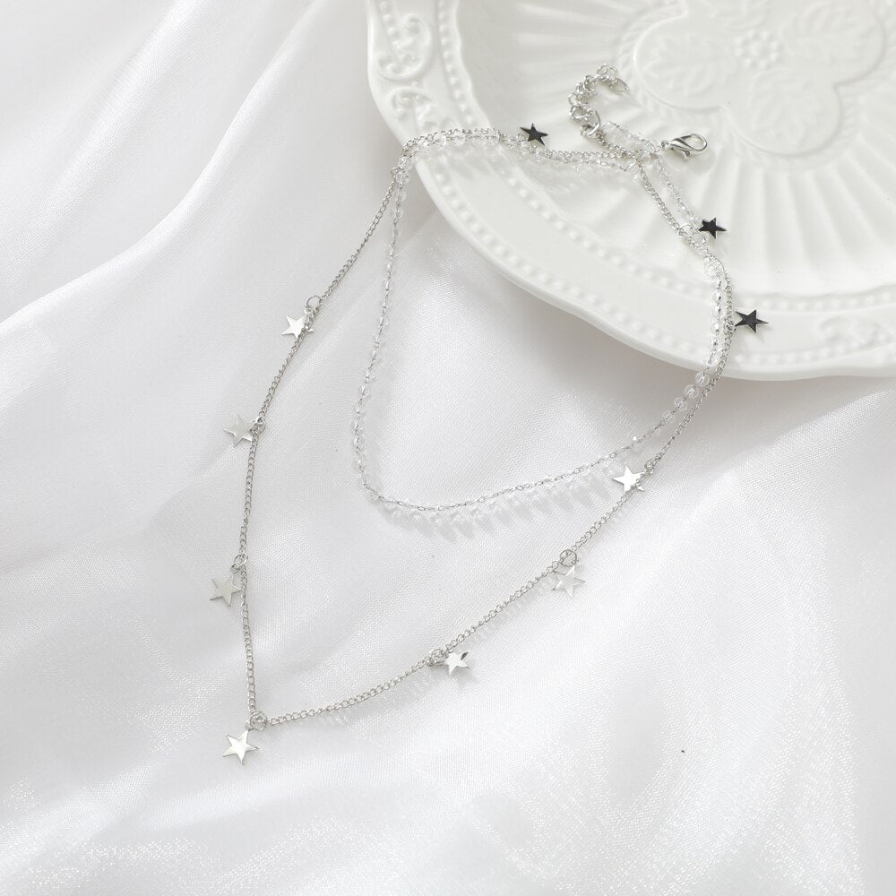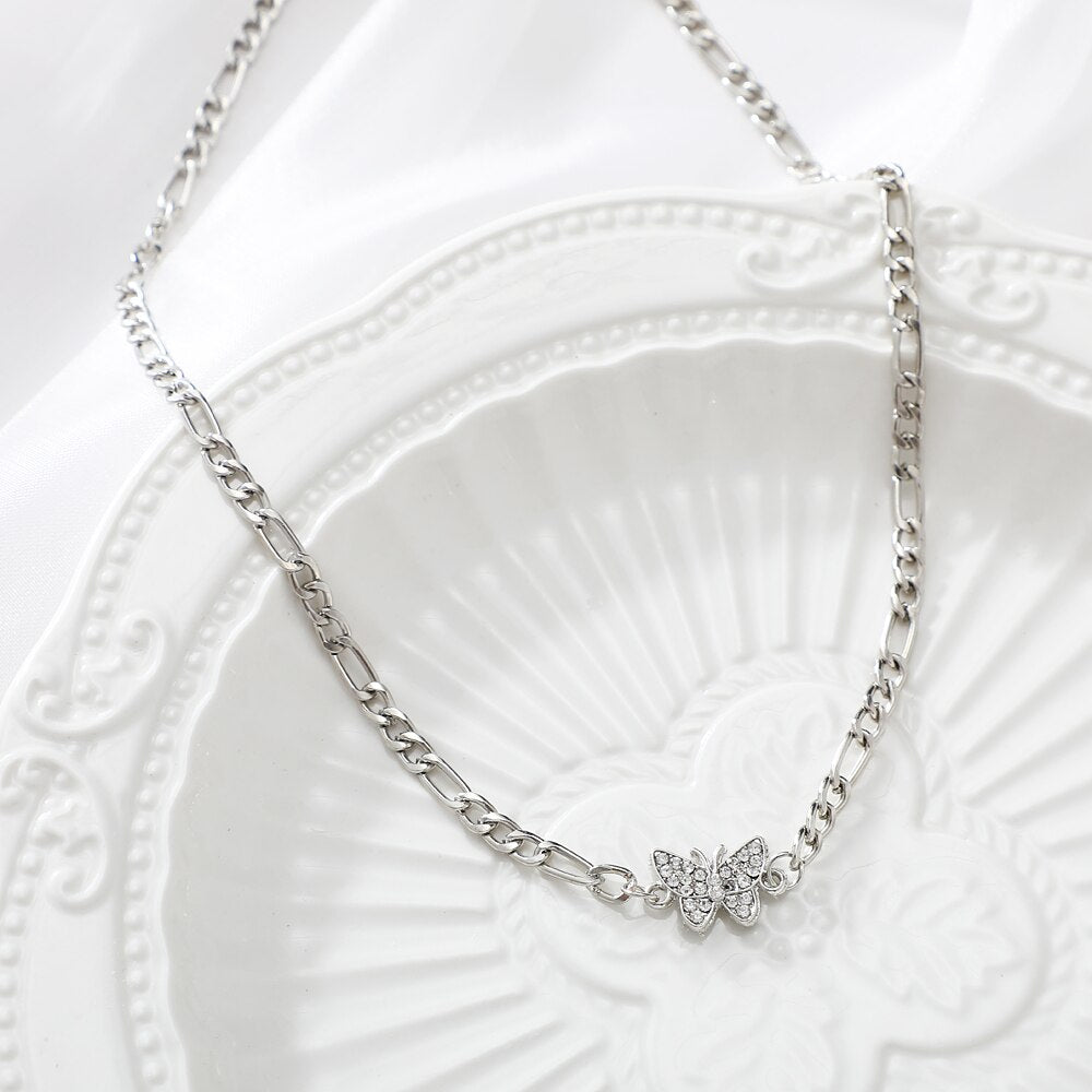 Trendy Metal Butterfly Moon Heart Pendant Necklace for Women Multilayer Necklace Set Gift Girl Jewelry