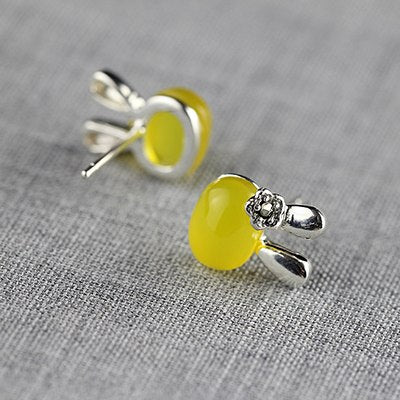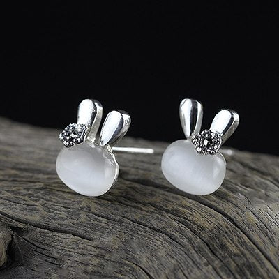 Trendy Rabbit Design Opal Jade Stud Earrings 100% 925 Sterling Silver Earrings For Women Animal Punk Flower Fine Jewelry SE55