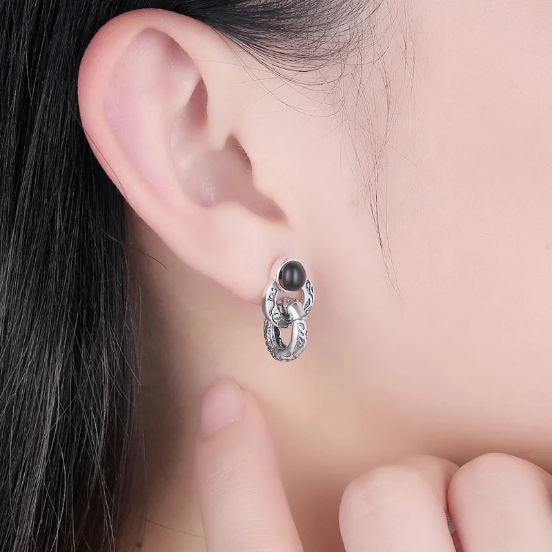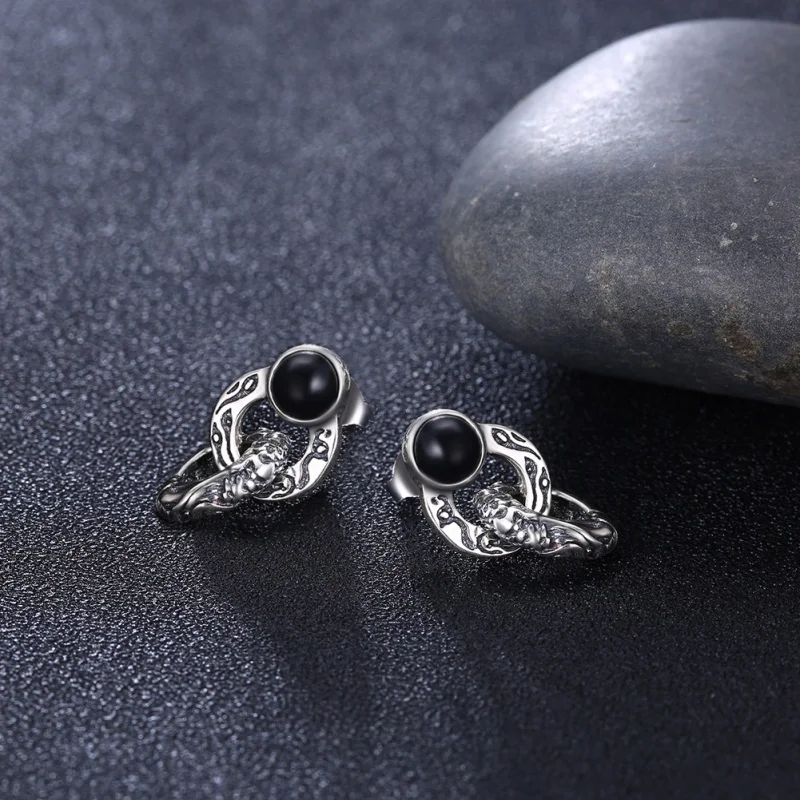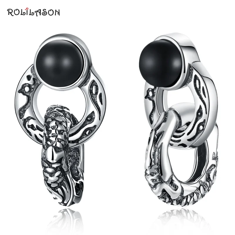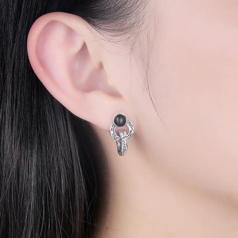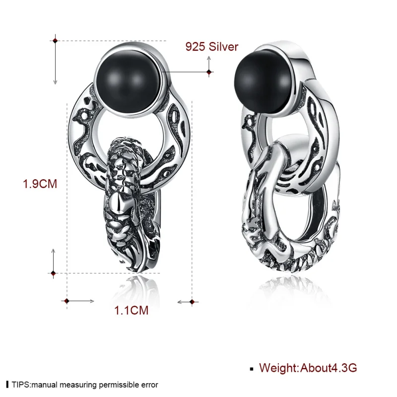 Trendy real 925 sterling silver created Black Agage zircon vintage stud earrings for girl earring pure silver jewelry 4.3g SE13