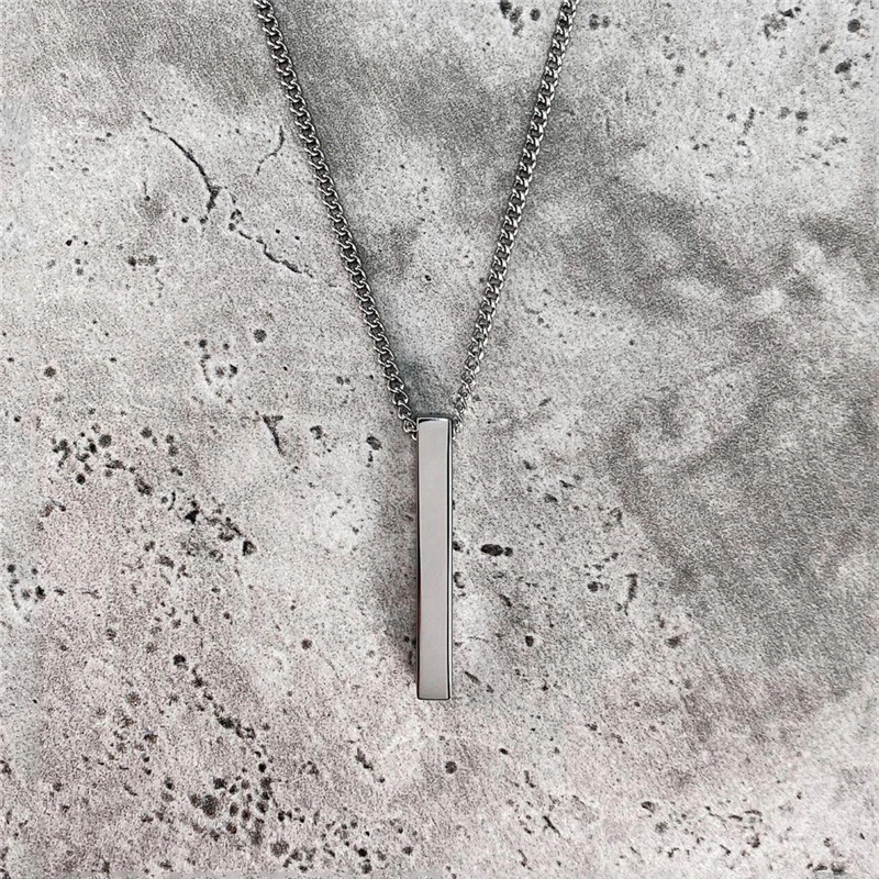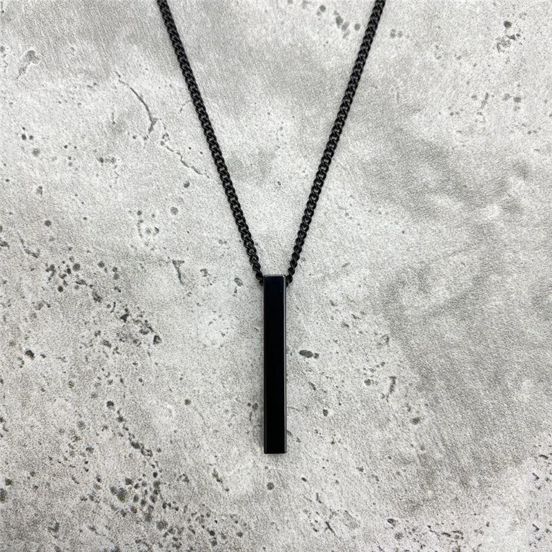 Trendy Rectangle Pendant Necklace Men Black Color Classic Stainless Steel Cuban Chain Necklace For Men Women Jewelry Gift
