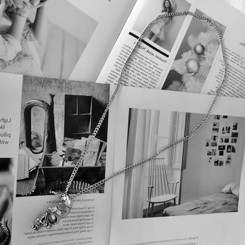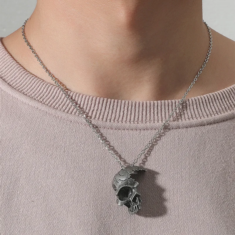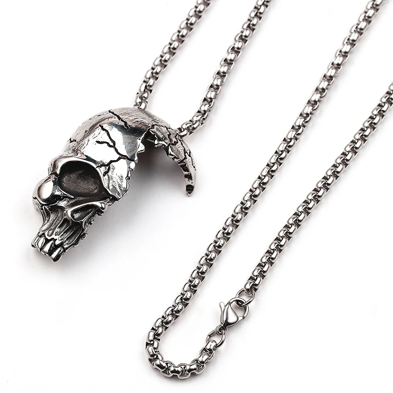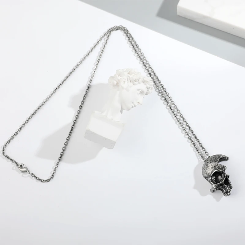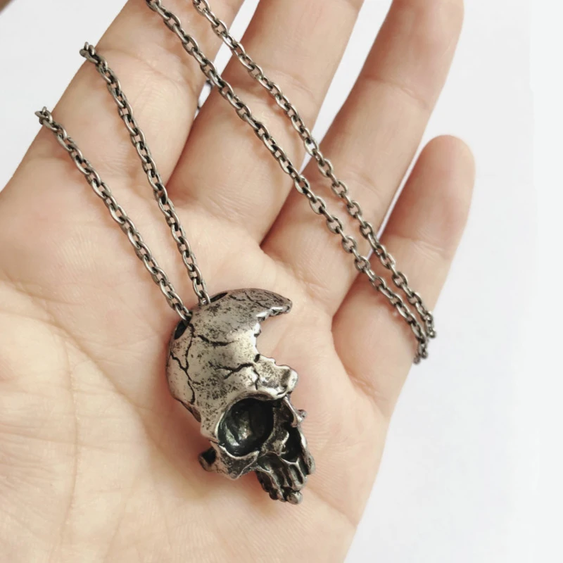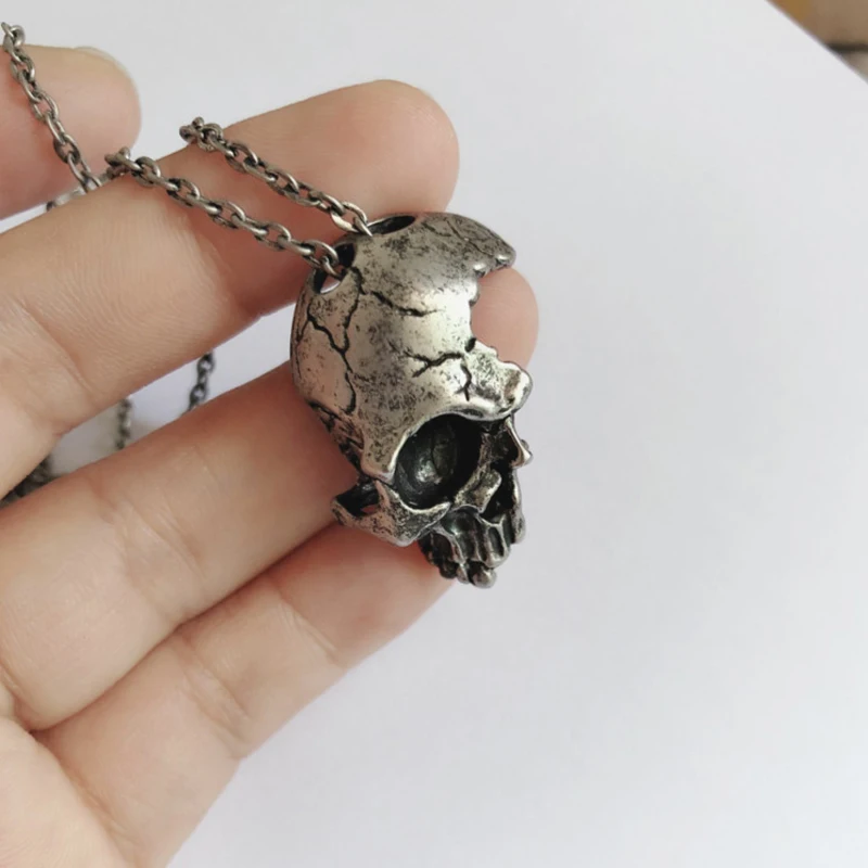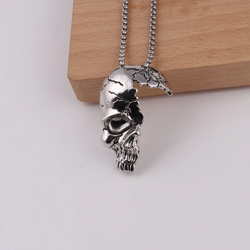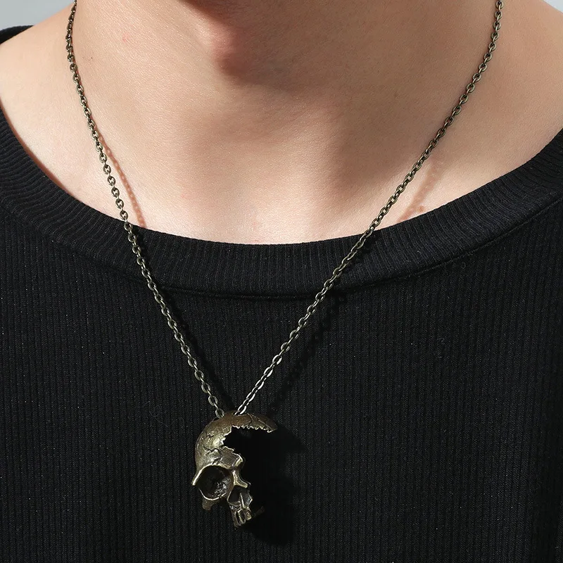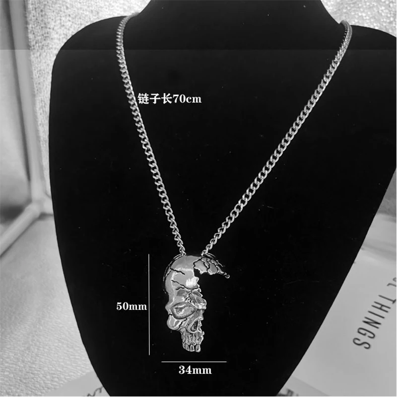 Trendy Retro Half Skull Necklace Silver Alloy Skeleton Pendant Vintage Gothic Jewelry Choker Pendants bronze Necklaces for Gift