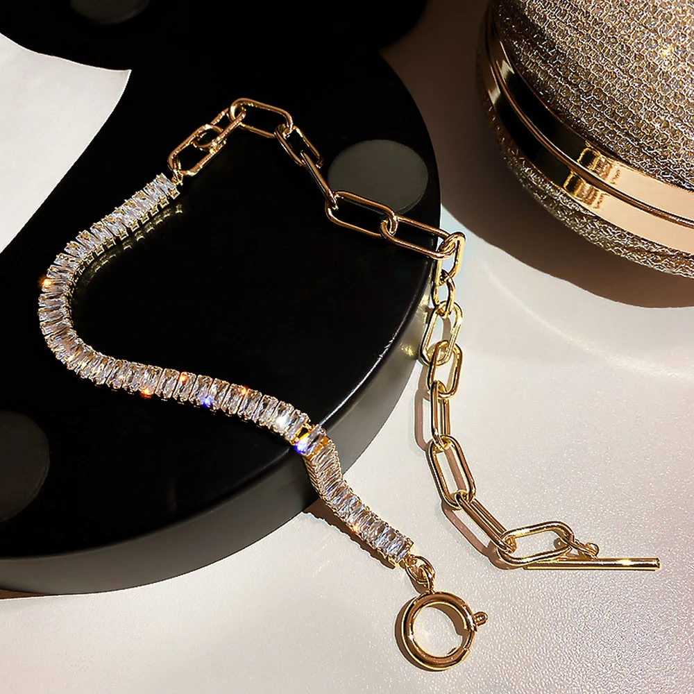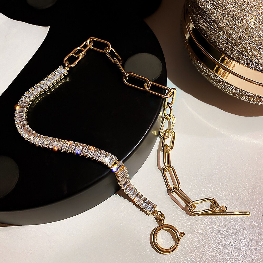 Trendy Shiny Zircon Stitching Geometric Choker Necklace Womens Thick Chain Necklace Temperament Punk Exaggerated Jewelry