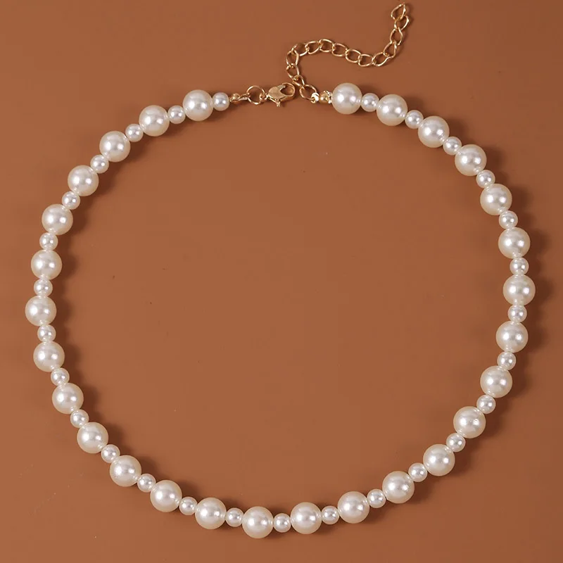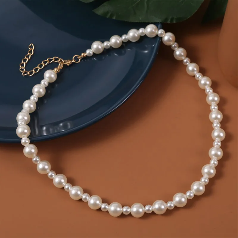 Trendy Simple Female White Pearl Chokers Necklaces For Women Girls OL Style Handmade Beaded Chain Necklace Party Jewelry