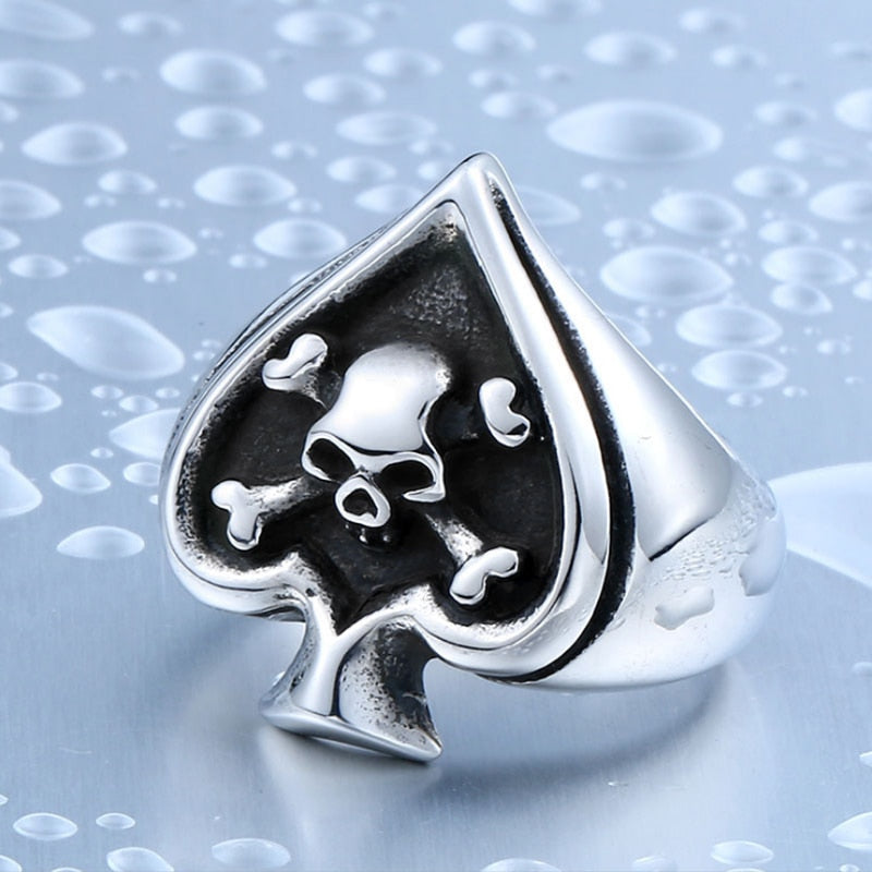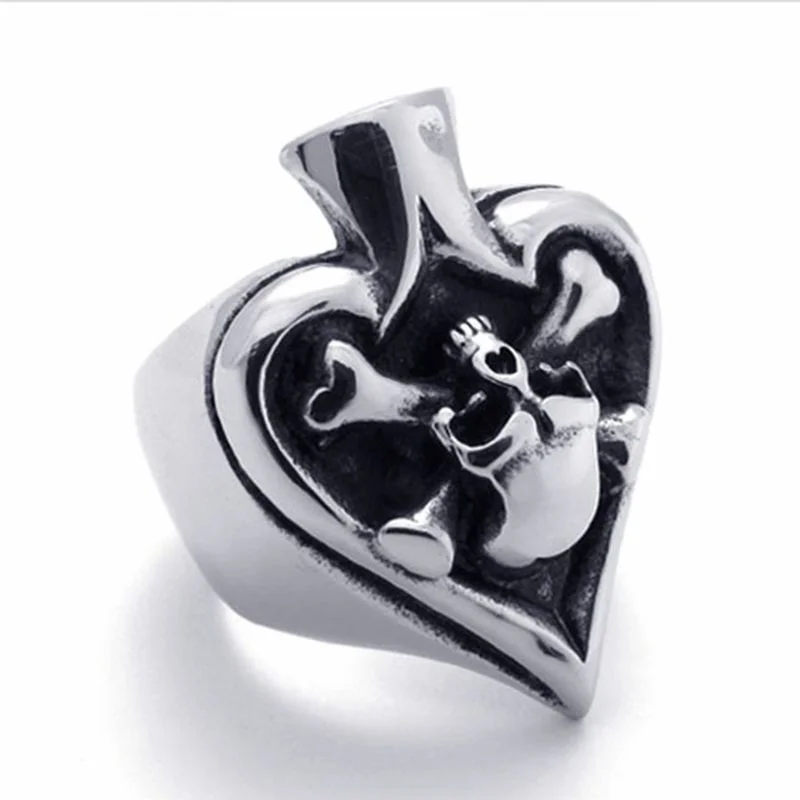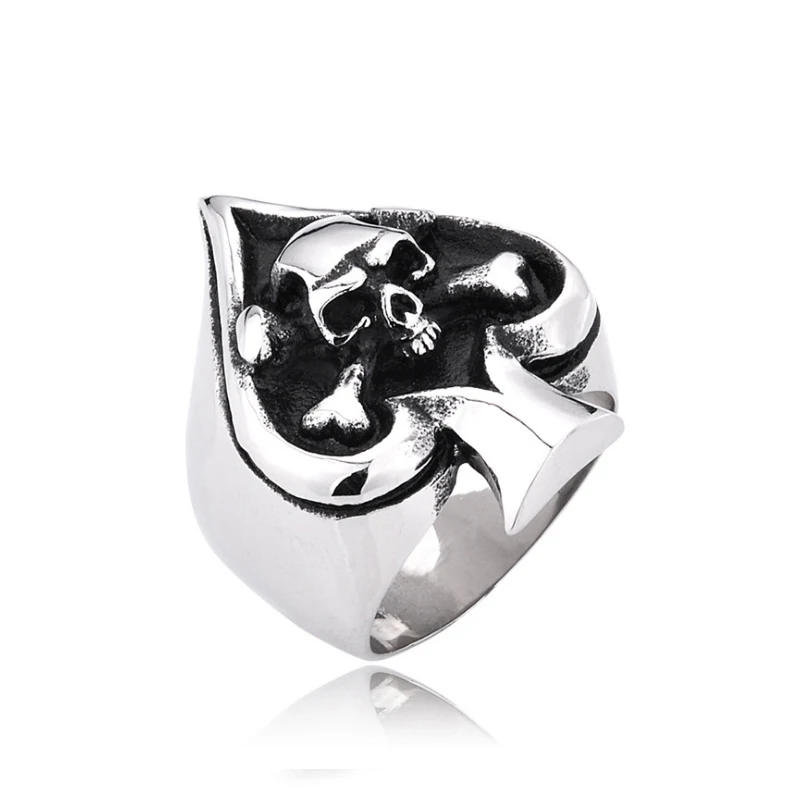 Trendy Spades Skull Head Ring Men's Ring Metal Interesting Shape Ring Accessories Party Jewelry Size 8 ~ 13