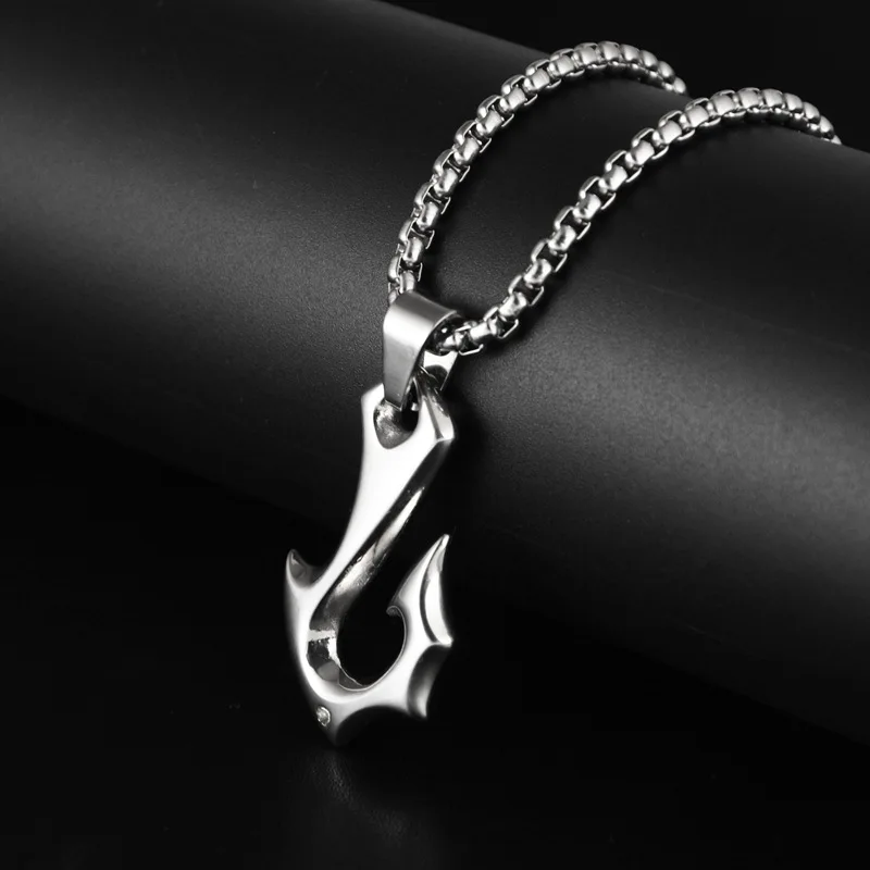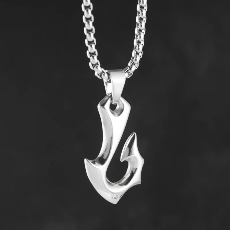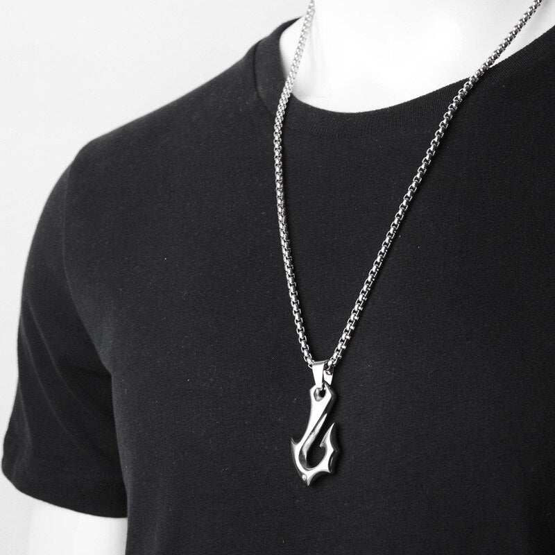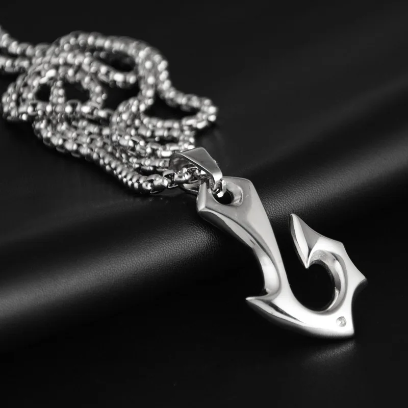 Trendy Special Fishhook Shape Pendant Necklace Men's Necklace Metal Sliding Pendant Accessories Party Jewelry