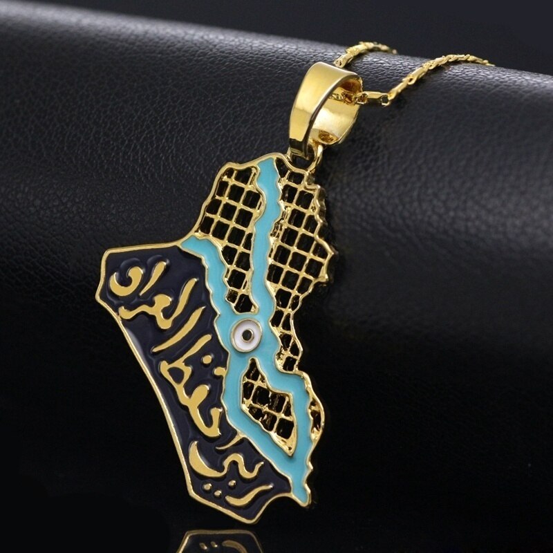 Trendy Style Gold-Plated Men Arabian Iraq Map Necklace Retro Hip Hop Party Necklace Jewelry